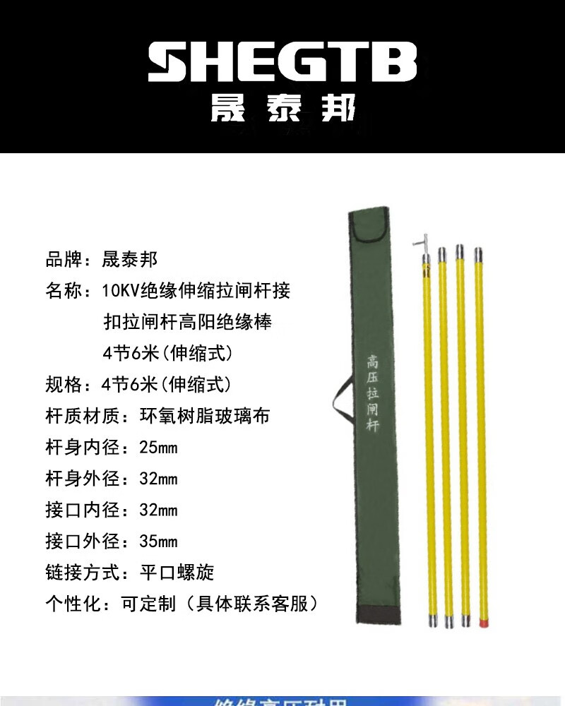 商品名称:晟泰邦 10KV绝缘伸缩拉闸杆接扣拉闸杆高阳绝缘棒 4节6米(伸缩式) 单位:套