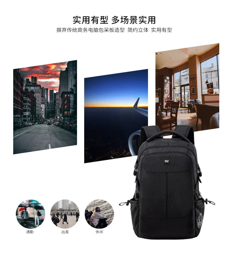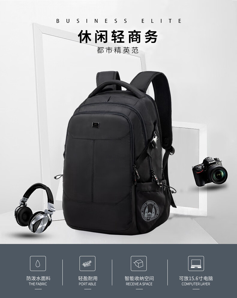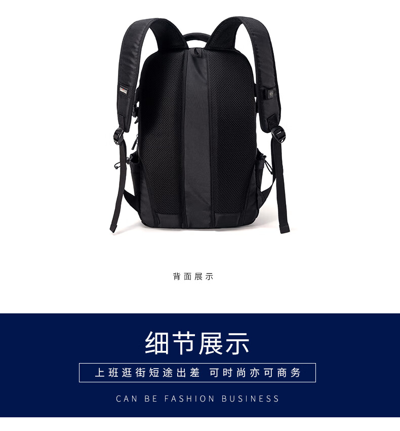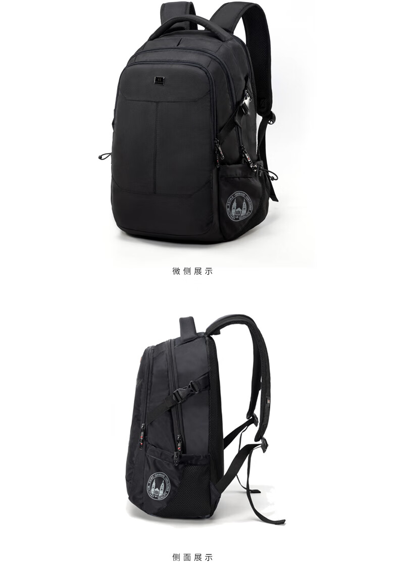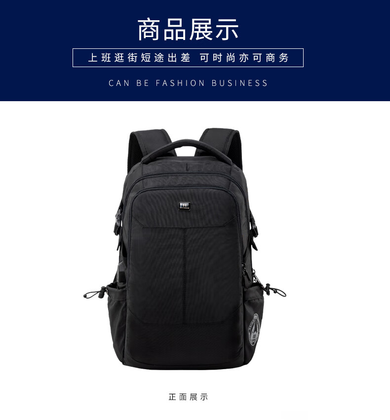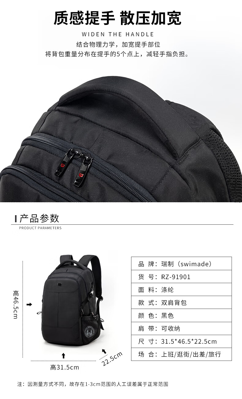 商品名称:瑞制 双肩包时尚防水背包电脑包男学生书包运动休闲男包 黑色RZ-91901 单位:个