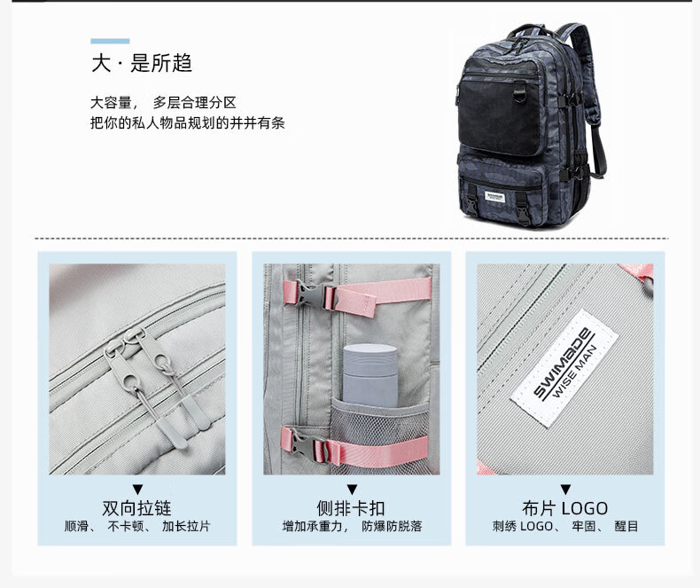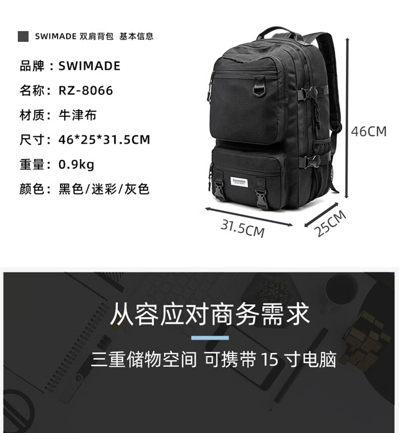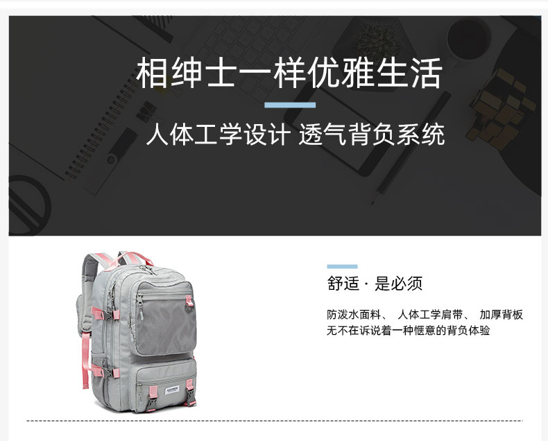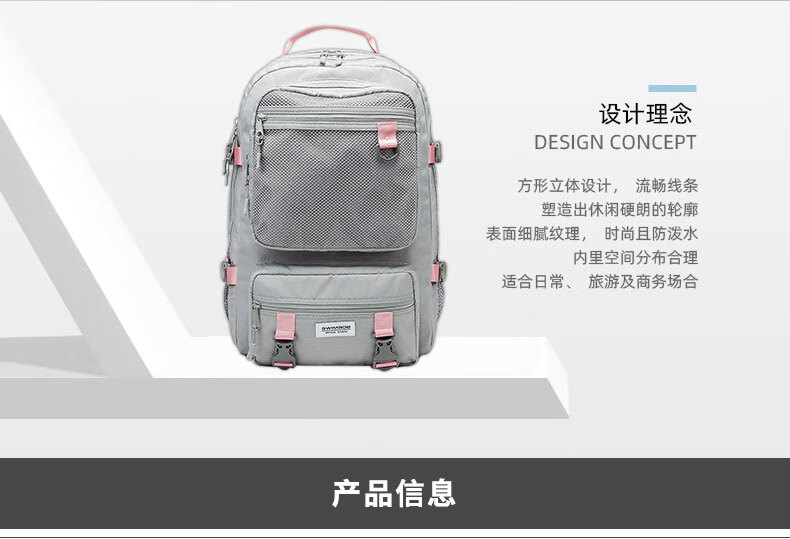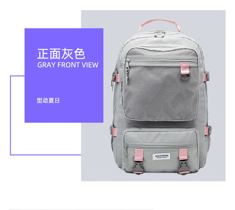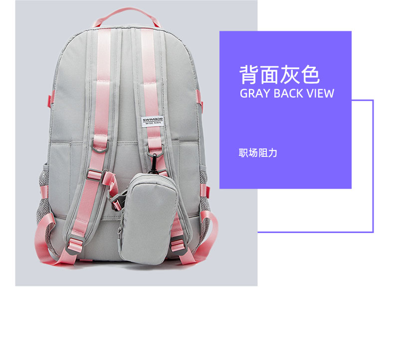 商品名称:瑞制 swimade双肩包男士大容量商务旅行包电脑背包初高中大学生书包女RZ-8066 浅灰色 单位:个