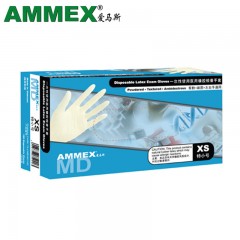 AMMEX/爱马斯 一次性乳胶手套 橡胶检查手套有粉 医生口腔牙科诊所100只TLCMD