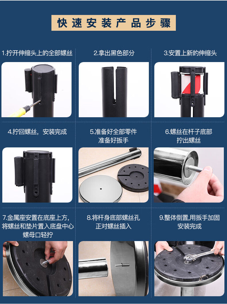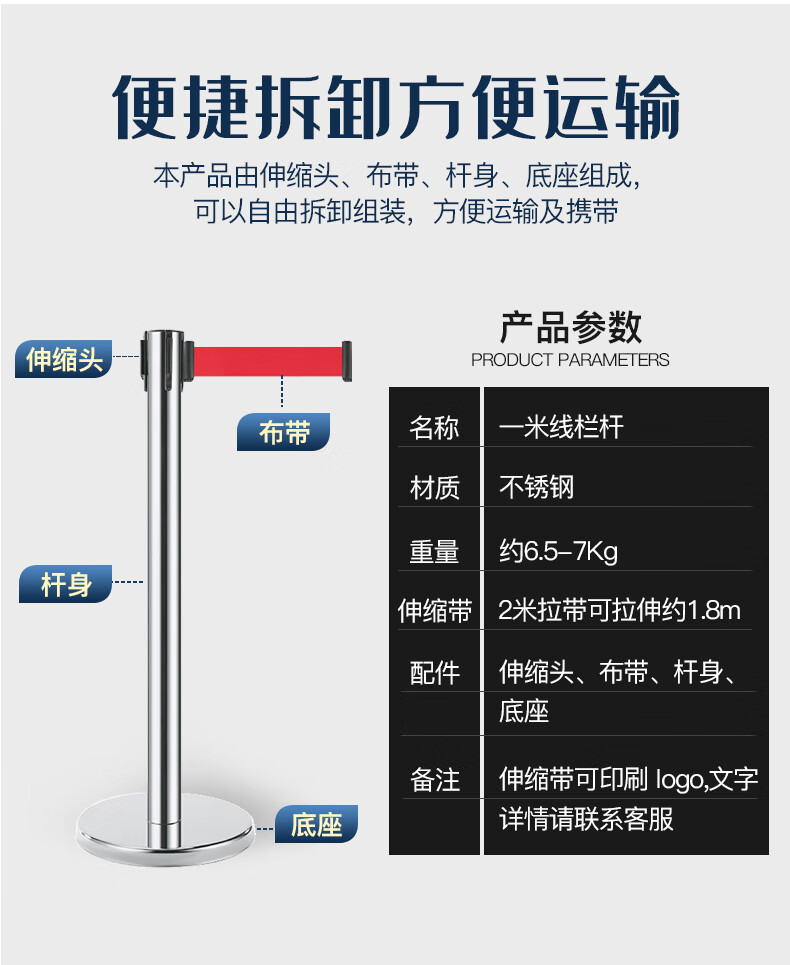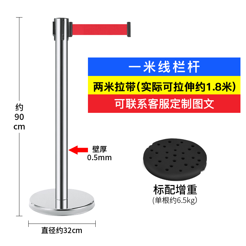 商品名称:星工(XINGGONG)一米线栏杆 加厚不锈钢伸缩隔离带警戒线隔离护栏 一对(2只装)