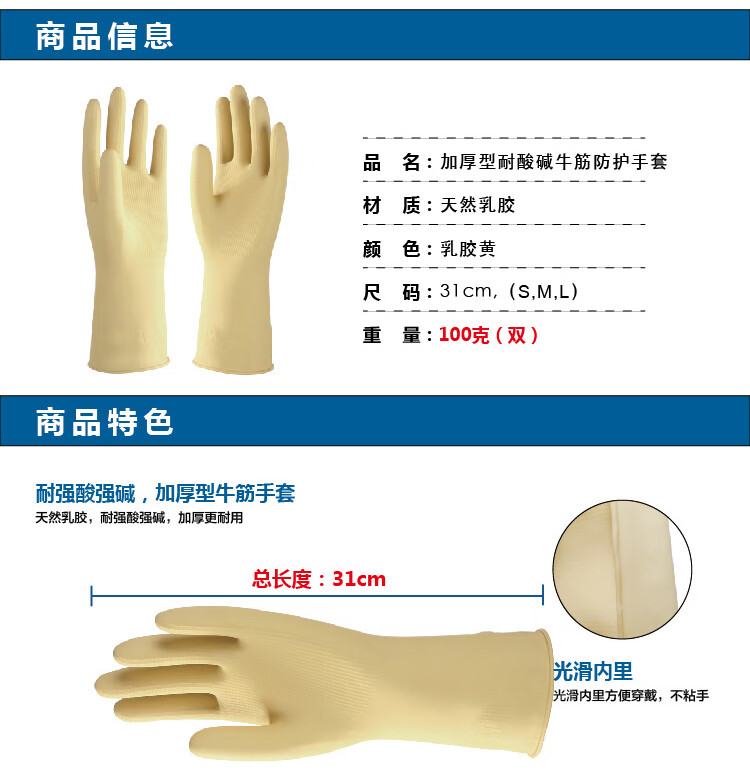 商品名称:星工(XINGGONG)牛筋劳保手套 橡胶胶皮乳胶塑胶加厚防水耐酸碱家务清洁工业劳防用 1付 10付起订