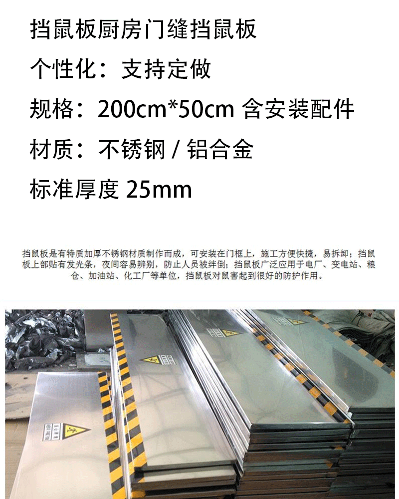 商品名称:晟泰邦挡鼠板不锈钢铝合金挡鼠板挡鼠板厨房门缝挡鼠板 支持定做 支持定做 200cm*50cm含安装配