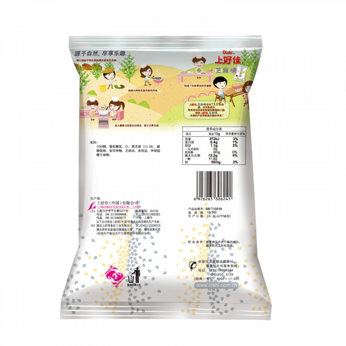 商品名称:上好佳 硬糖芝麻糖 100g/袋