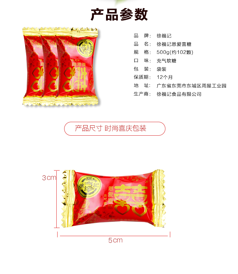 商品名称:徐福记 恩爱喜糖 大红喜字充气软糖 结婚婚礼喜糖果散装批发500g