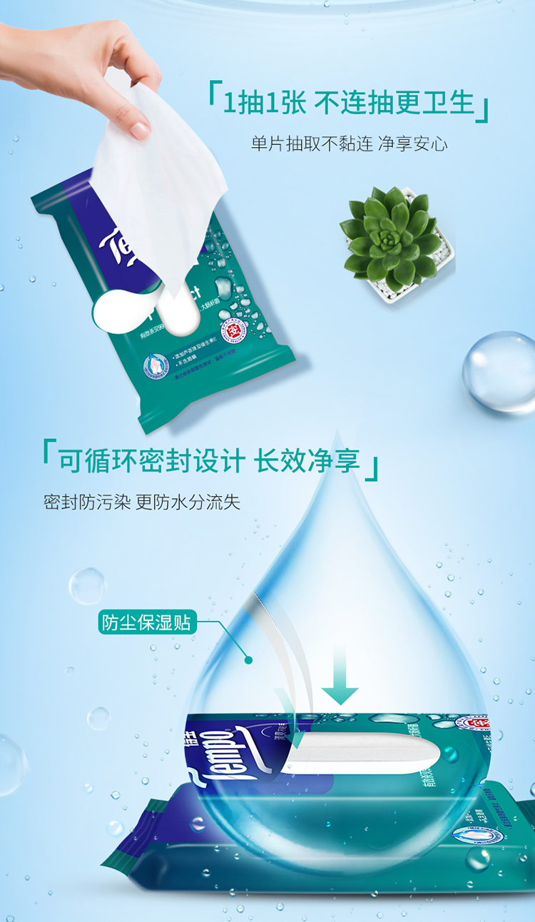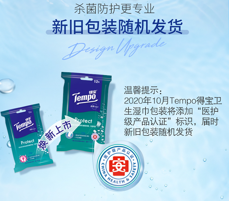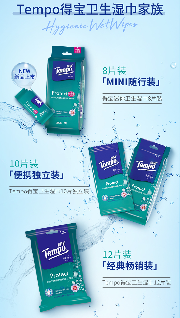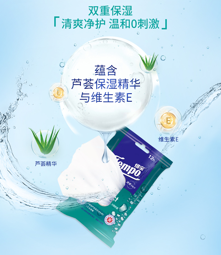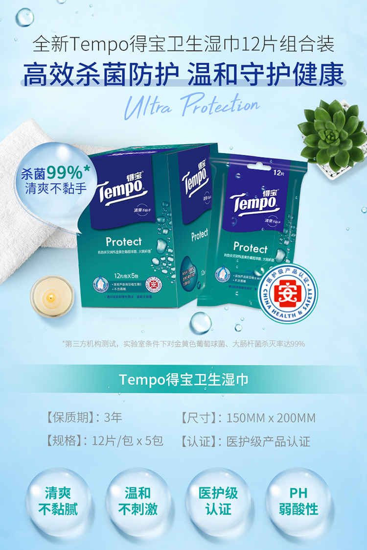 商品名称:得宝(Tempo)湿巾 60片(5包x12片)盒装 杀菌湿巾湿纸巾 卫生洁肤 单位:提