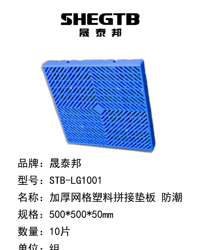商品名称:晟泰邦 STB-LG1001加厚网格塑料拼接垫板 防潮500*500*50mm 10片(单位:组)