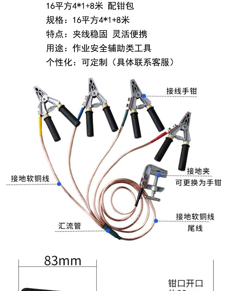 商品名称:晟泰邦 个人保安线 个人保安接地线 个人保安线钳 低压个人保安线 16平方4*1+8米 配钳包