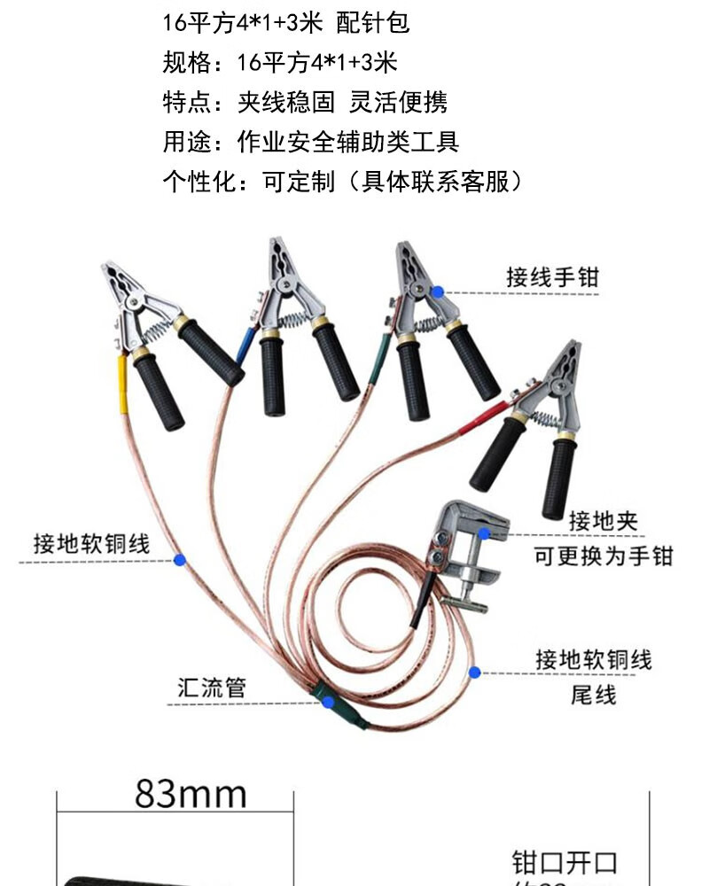 商品名称:晟泰邦 个人保安线 个人保安接地线 个人保安线钳 低压个人保安线 16平方4*1+3米 配针包