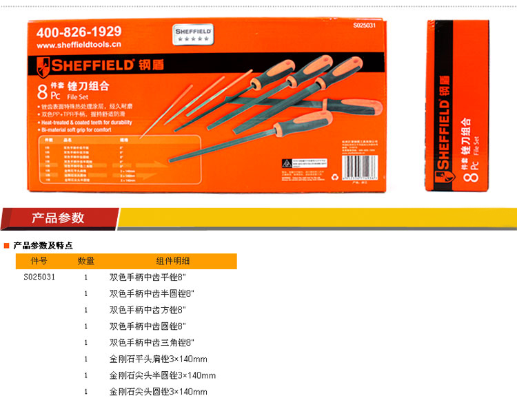 商品名称:钢盾 SHEFEIELD S025031 8件套锉刀组合