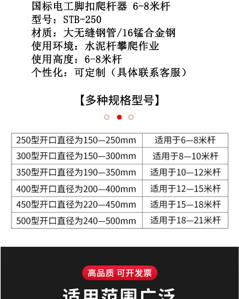 商品名称:晟泰邦STB-250型 脚扣电力 电杆脚爬爬树脚扣电线杆脚扣加厚型 国标电工脚扣爬杆器 6-8米杆