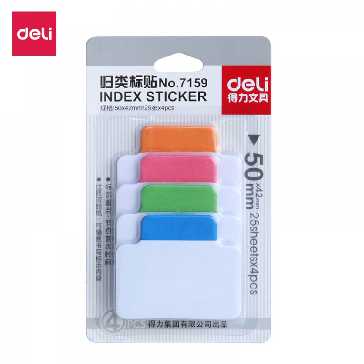 商品名称:得力 7159分类归类百事贴50*24mm 25张四色便利条彩色标签贴便利贴