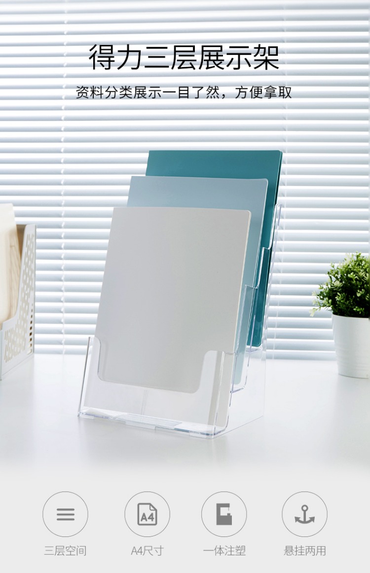 商品名称:得力 亚克力A4三层桌面资料展示架书报刊架杂志宣传架名片盒