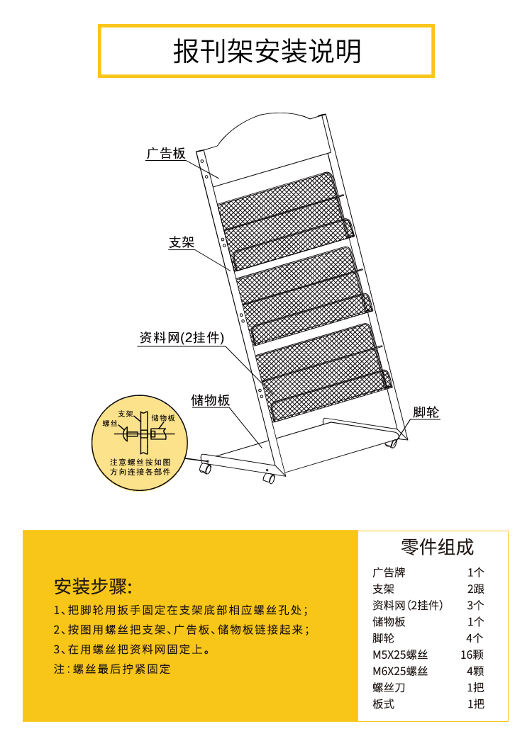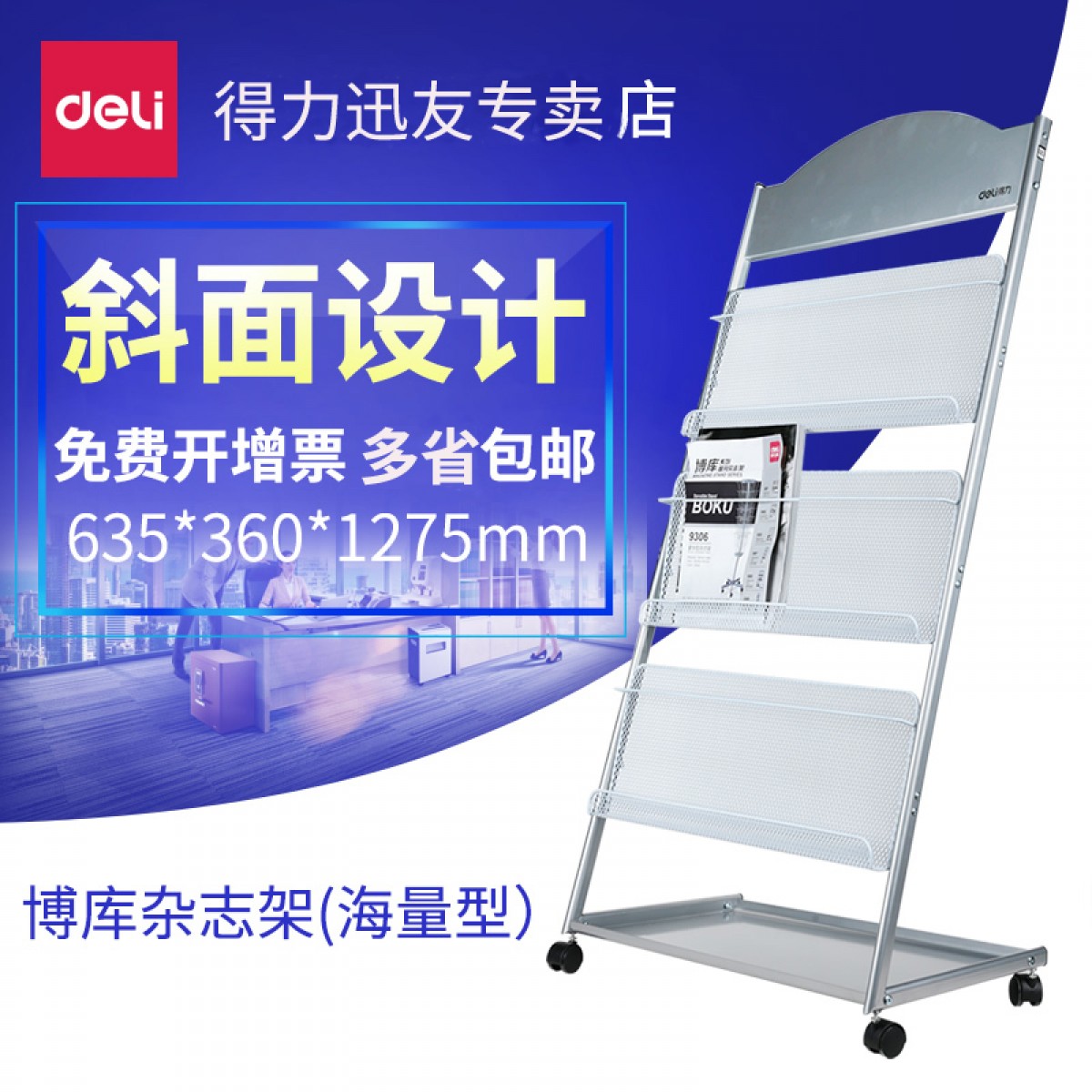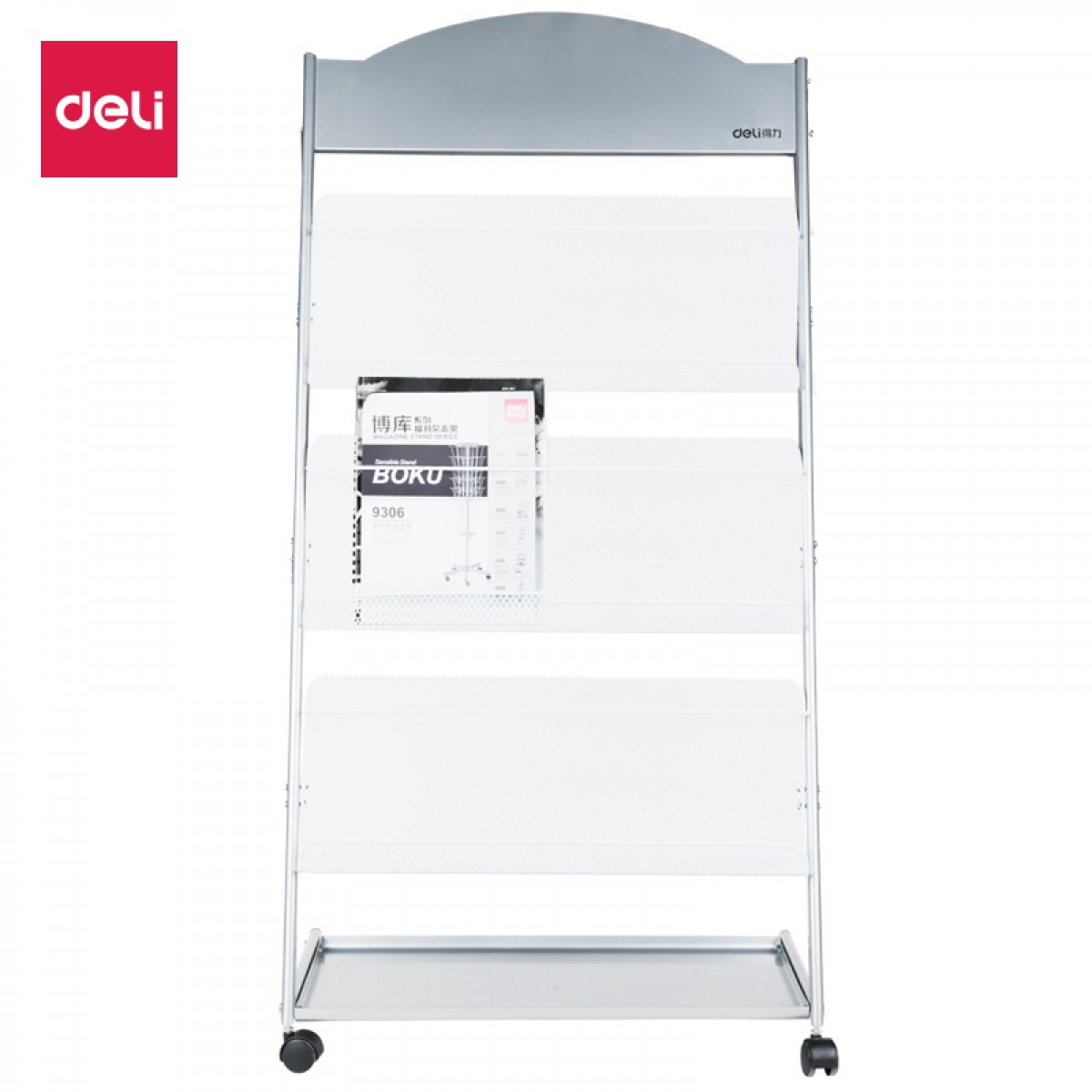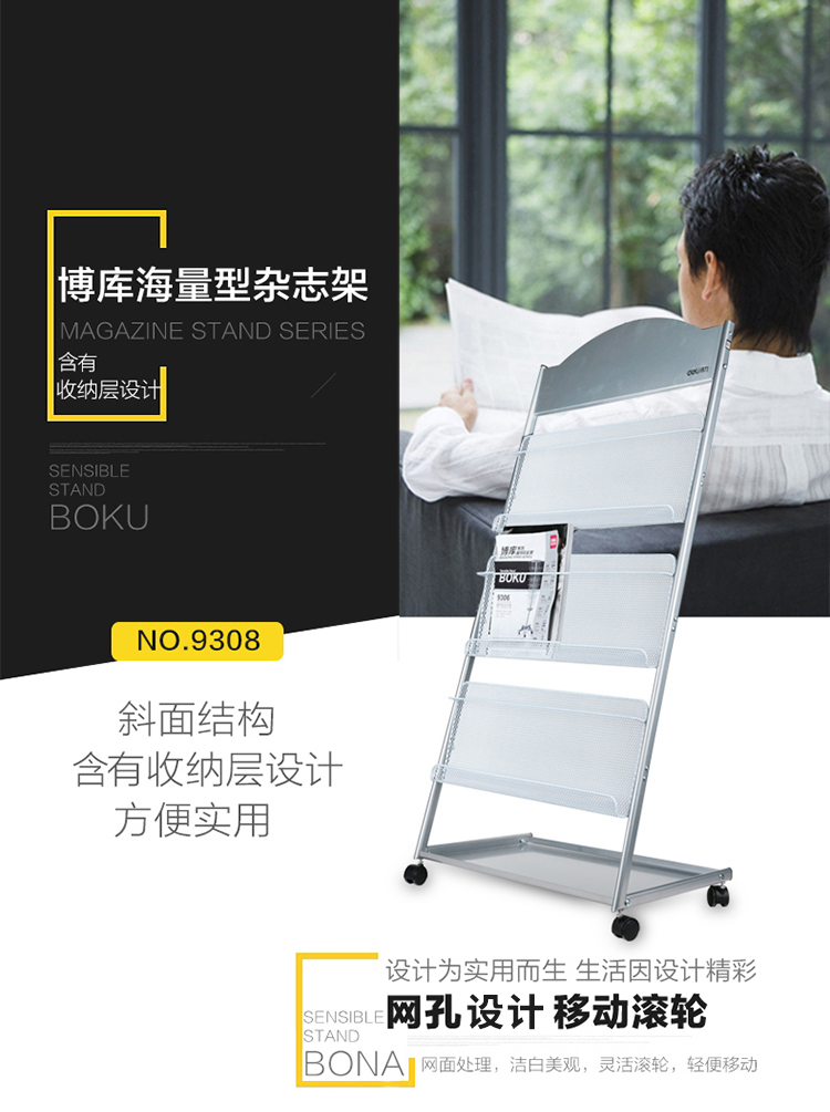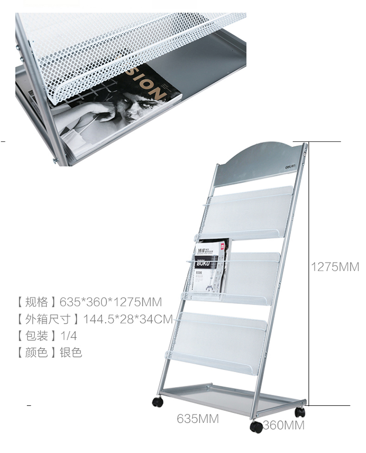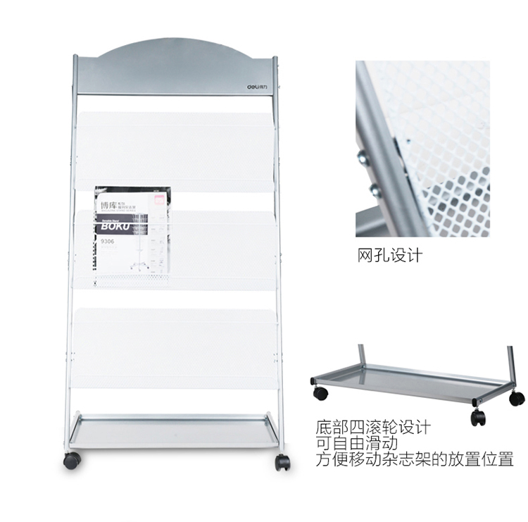 商品名称:得力 9308万向滚轮杂志架 欧式简约报刊架 落地展示书报架 海量型