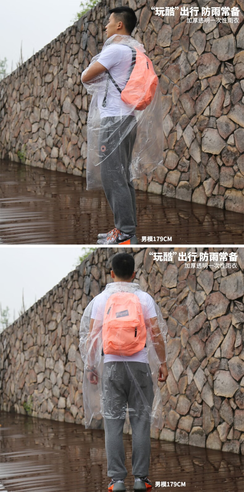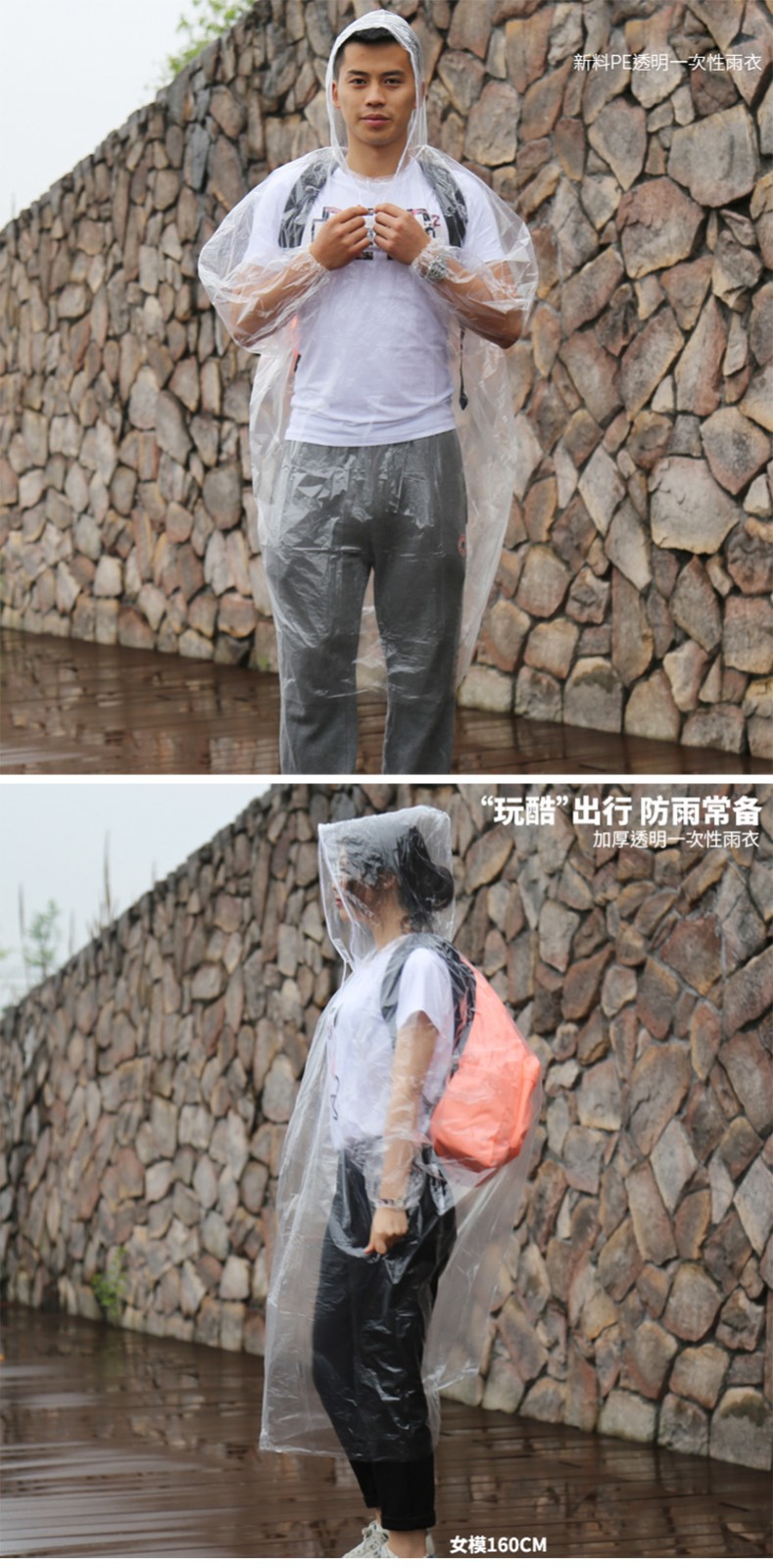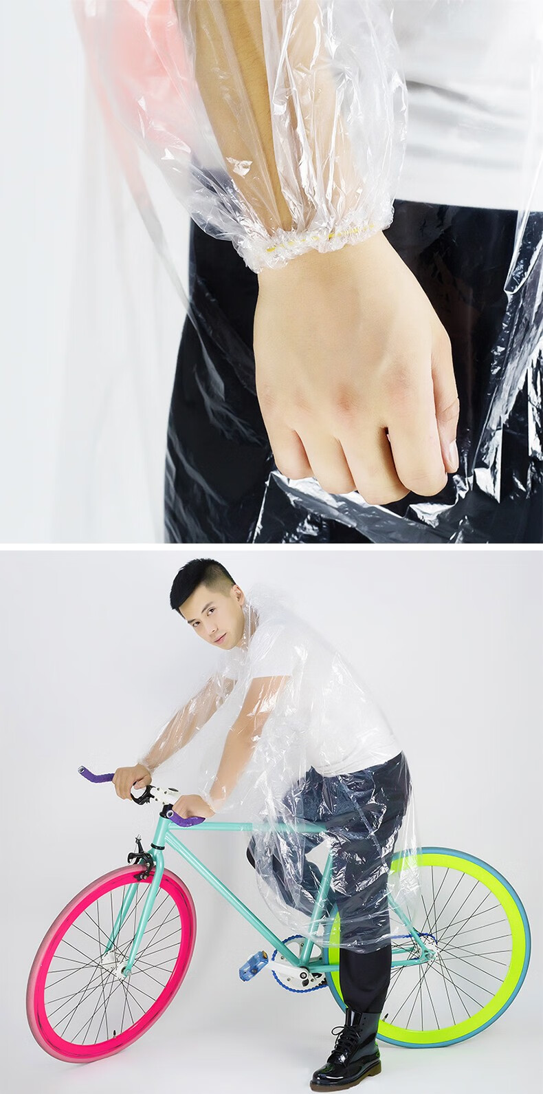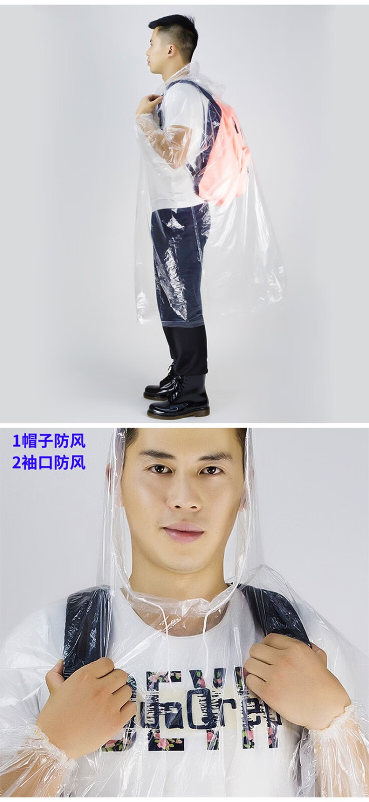商品名称:三极(Tri-polar)一次性雨衣袖口松紧防风骑行防护雨衣钓鱼户外pe透明连体雨衣TP1665 10件装/套 单位:套