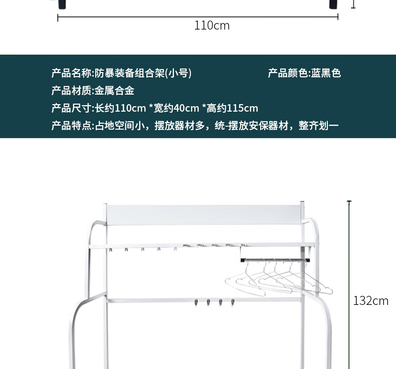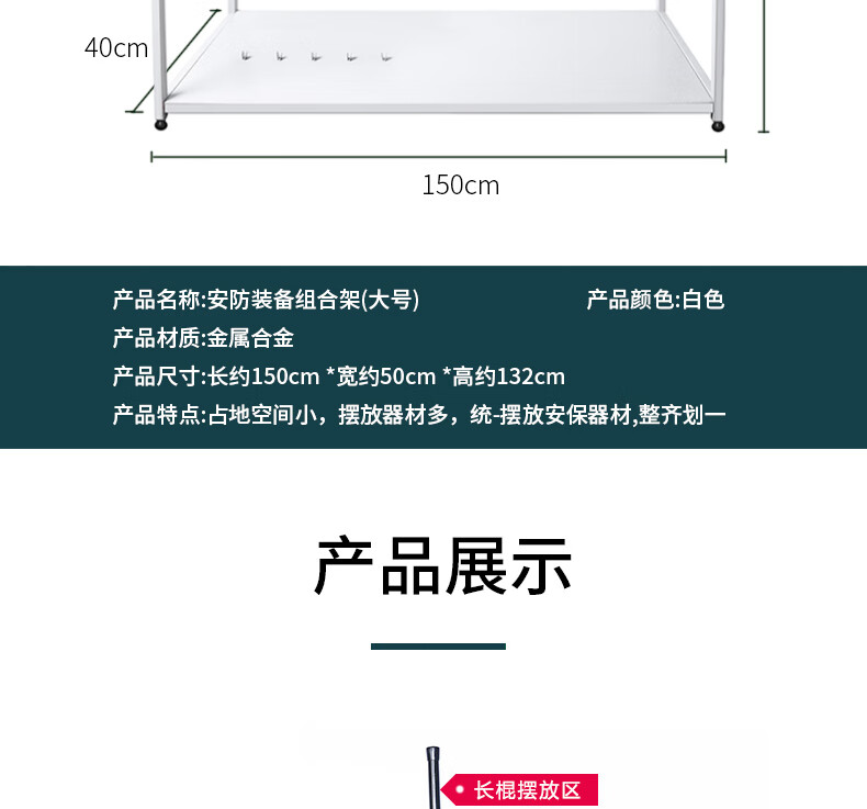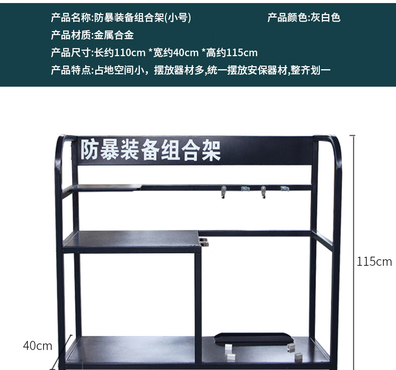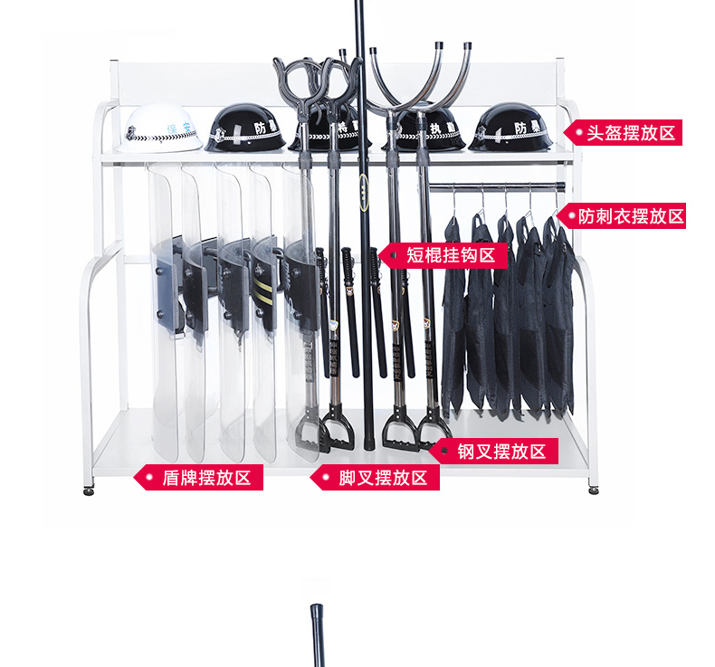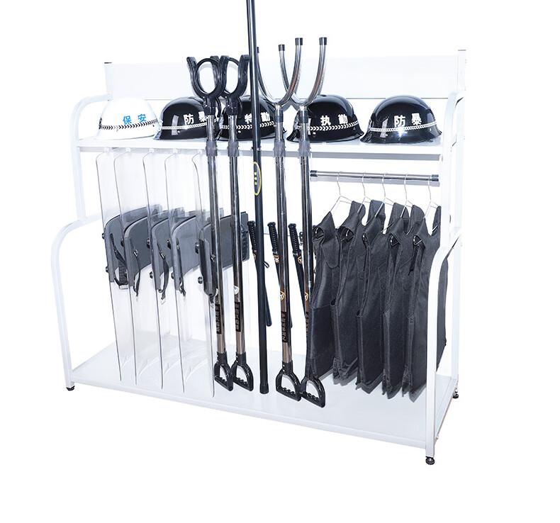 商品名称:丛林狐防暴装备架盾牌支架防刺衣防暴头盔防刺服防刺背心钢叉脚叉抓捕器安保安防训练棍防暴棍 白色架