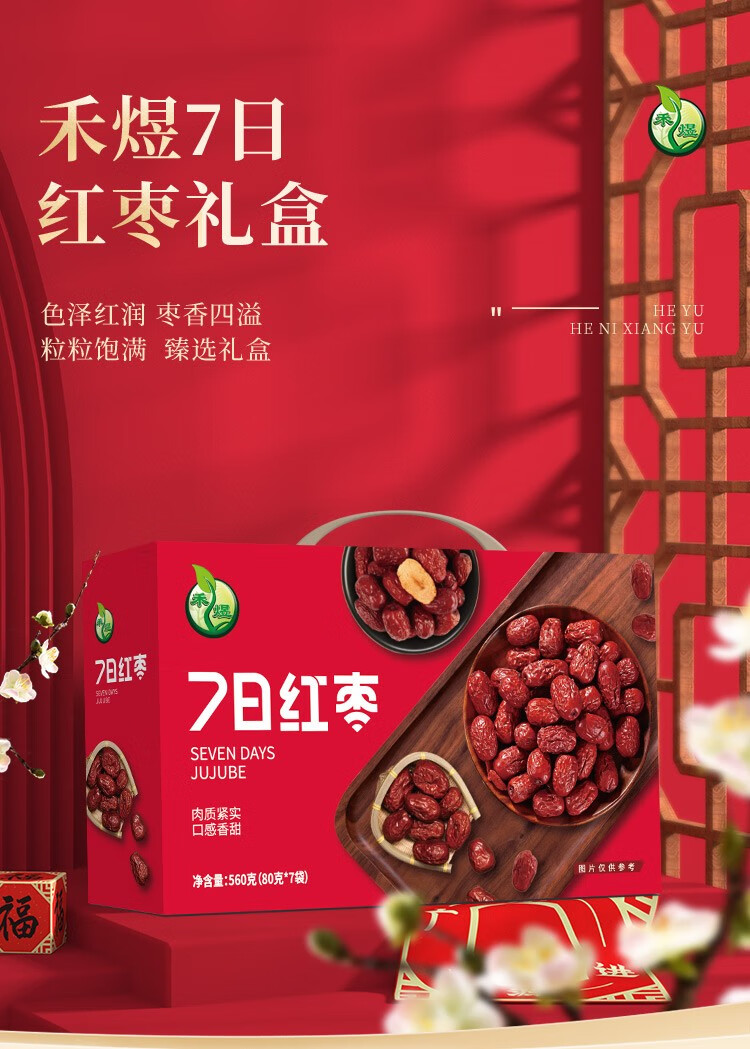 商品名称:禾煜 夏季杂粮干货礼盒 不熏不掺不染 五谷杂粮礼盒 甄选礼盒 粥料礼盒 7日红枣礼盒560g