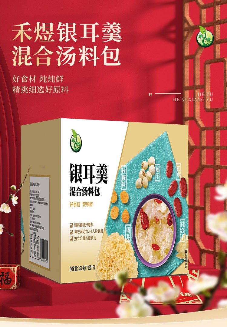 禾煜 夏季杂粮干货礼盒 不熏不掺不染 五谷杂粮礼盒 甄选礼盒 粥料礼盒 银耳羹礼盒350g