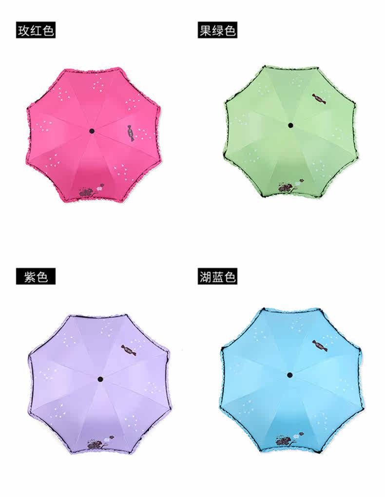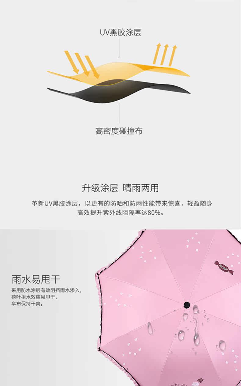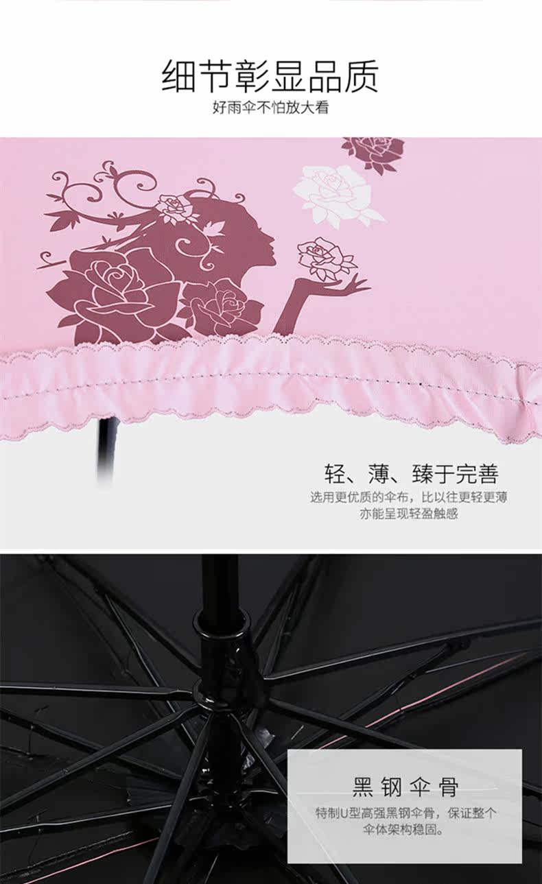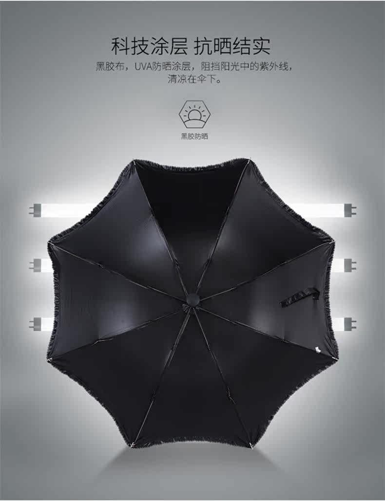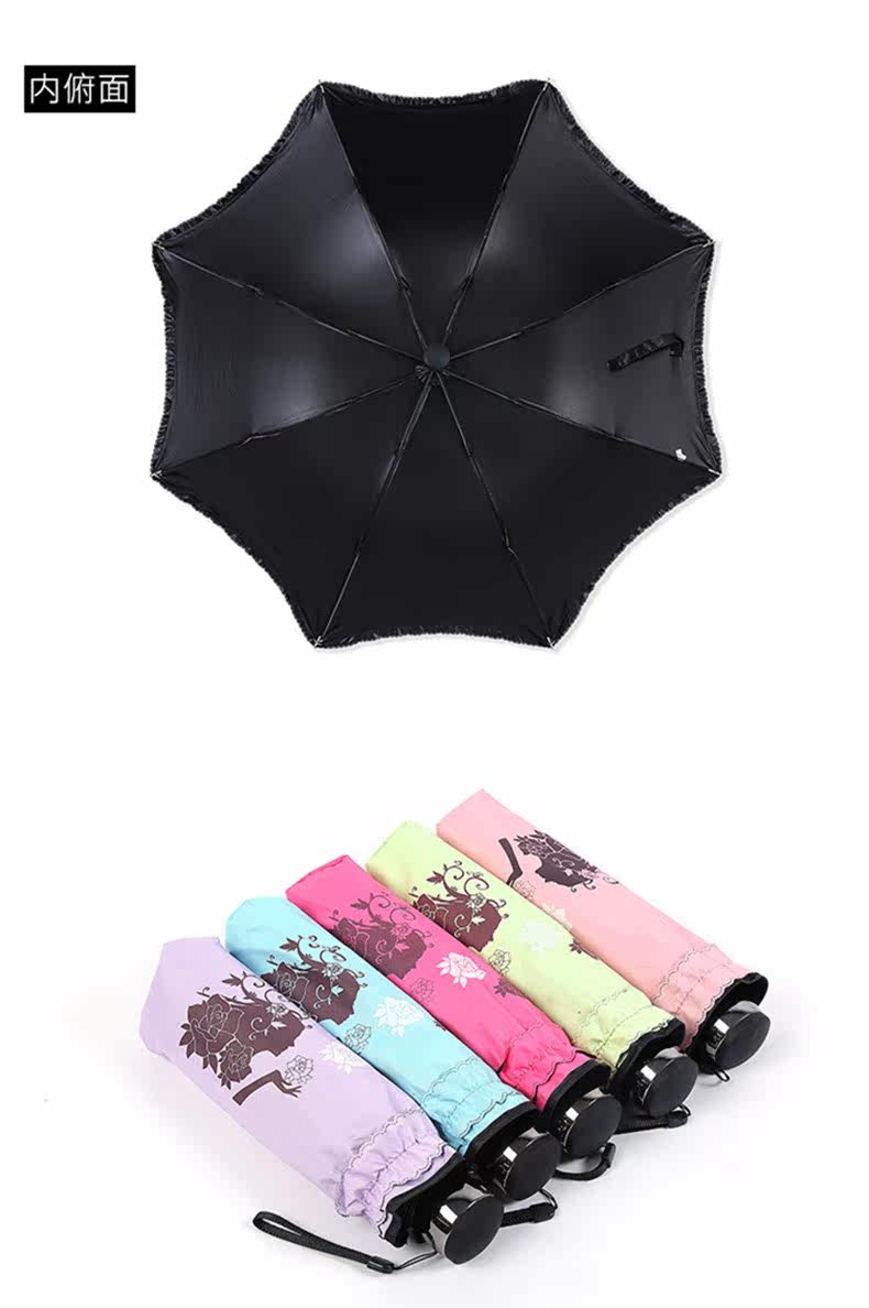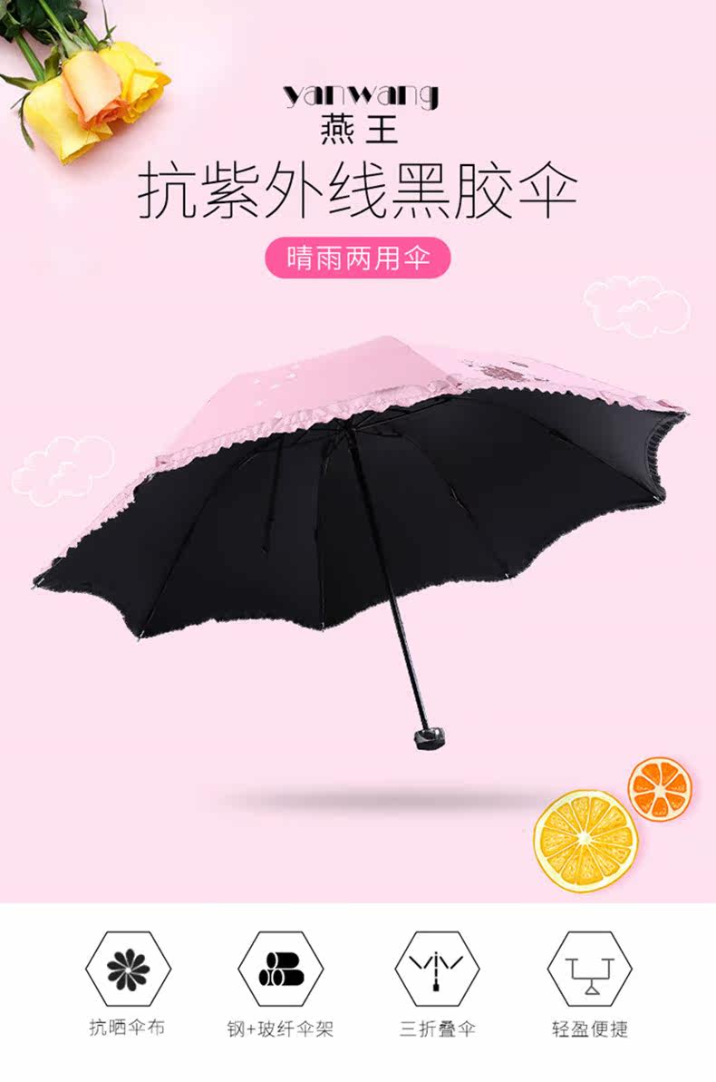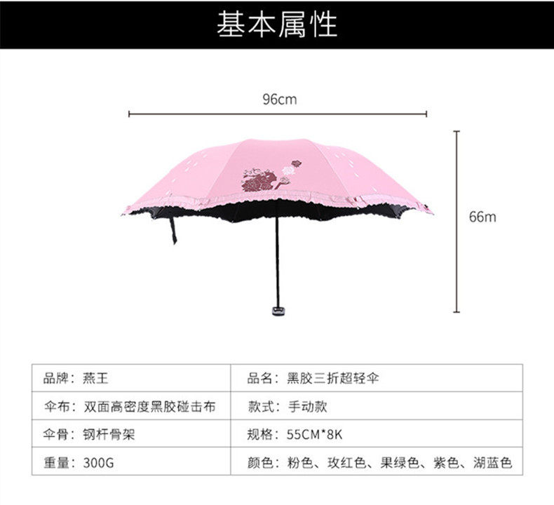 商品名称:燕王 3808女人花花边黑胶三折伞晴雨伞防晒伞8骨 (颜色随机) 单位:把