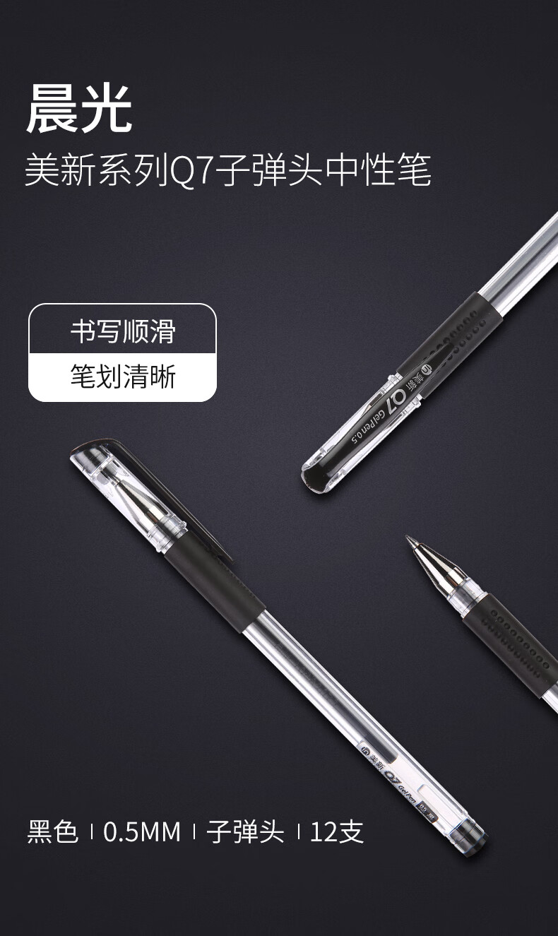 商品名称:晨光(M&G) 48支0.5mm黑色中性笔 子弹头签字笔 拔盖碳素笔 办公用水笔Q7A 3盒起订