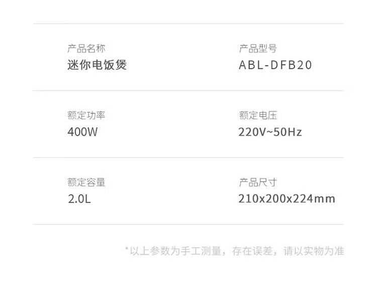 商品名称:艾贝丽Abereve 电饭锅ABL-DFB20 白色 单位:个