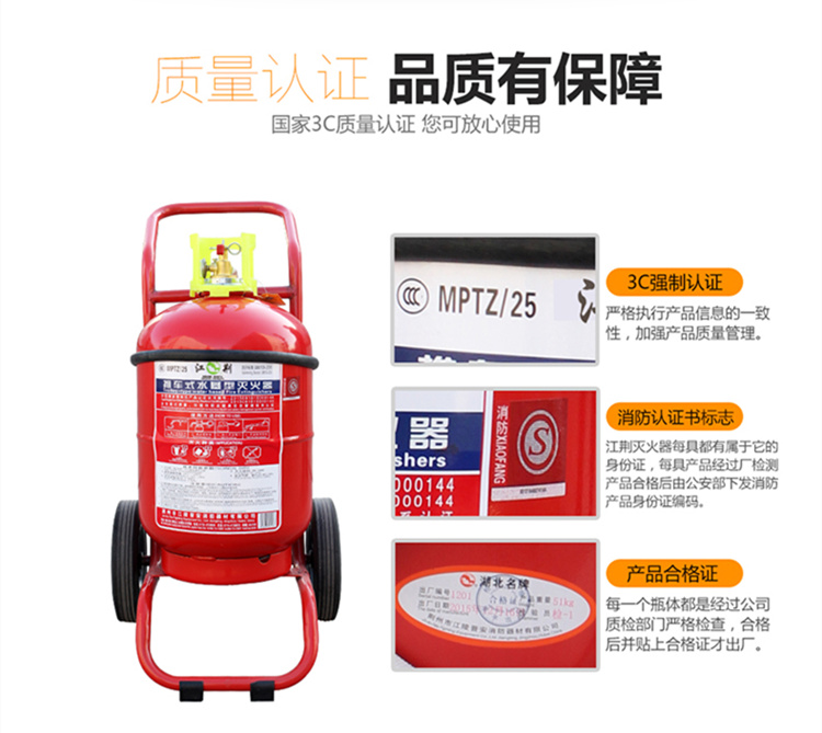 商品名称:江荆 水基灭火器25升 仓库厂房用 推车式水基灭火器MPTZ/25