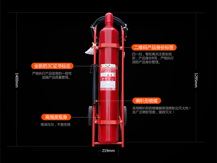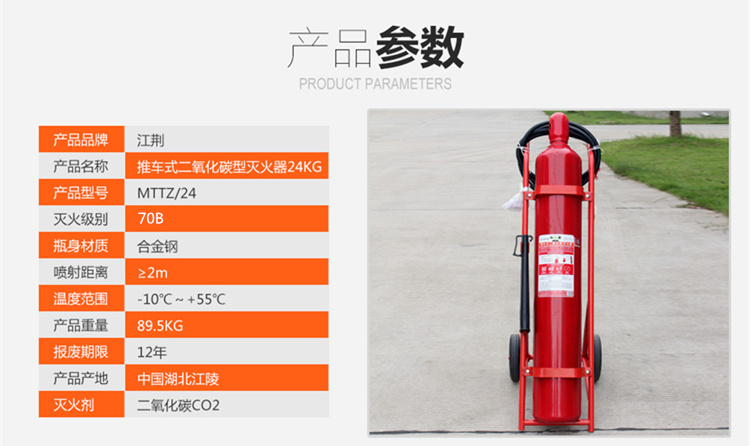 商品名称:江荆 二氧化碳灭火器24公斤 仓库厂房用 推车式灭火器MTTZ/24