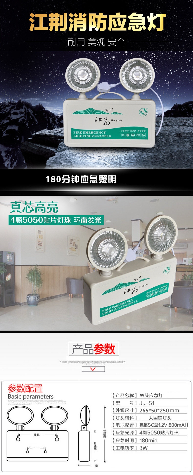 商品名称:江荆 双头应急灯 消防应急照明灯 商用及家用