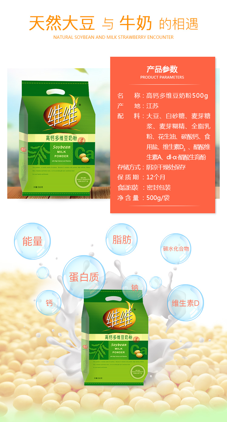商品名称:维维 豆奶粉营养早餐水果燕麦伴侣冲饮代餐 500g