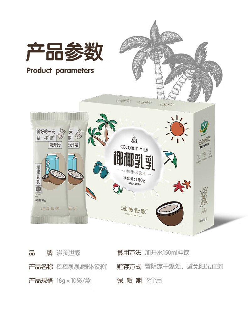 商品名称:滋美世家 椰椰乳乳10袋装180g 营养代餐椰奶粉