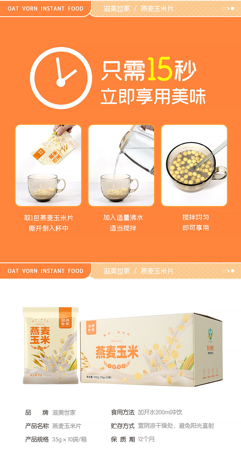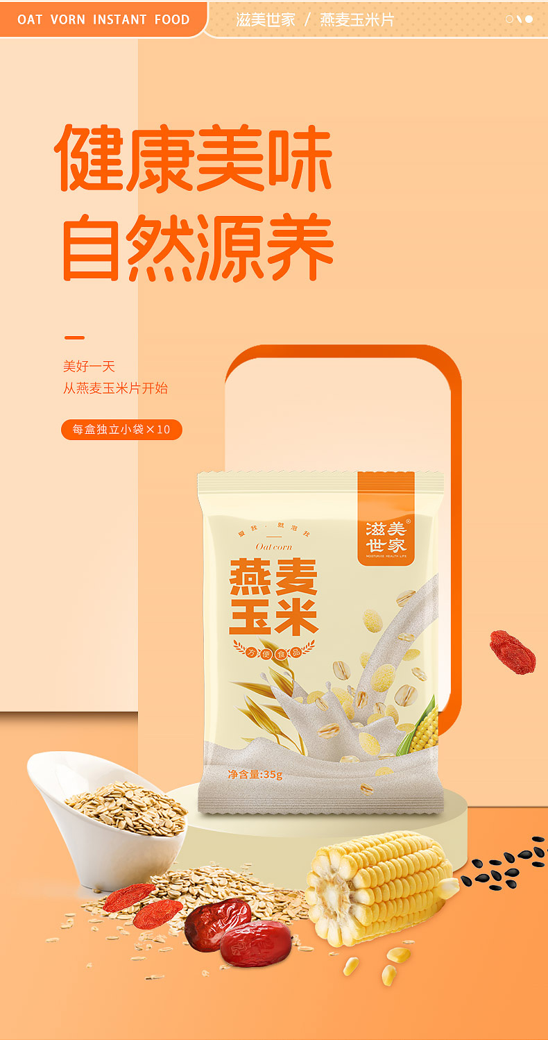 商品名称:滋美世家 燕麦玉米片35gx10袋 350g 代餐方便食品