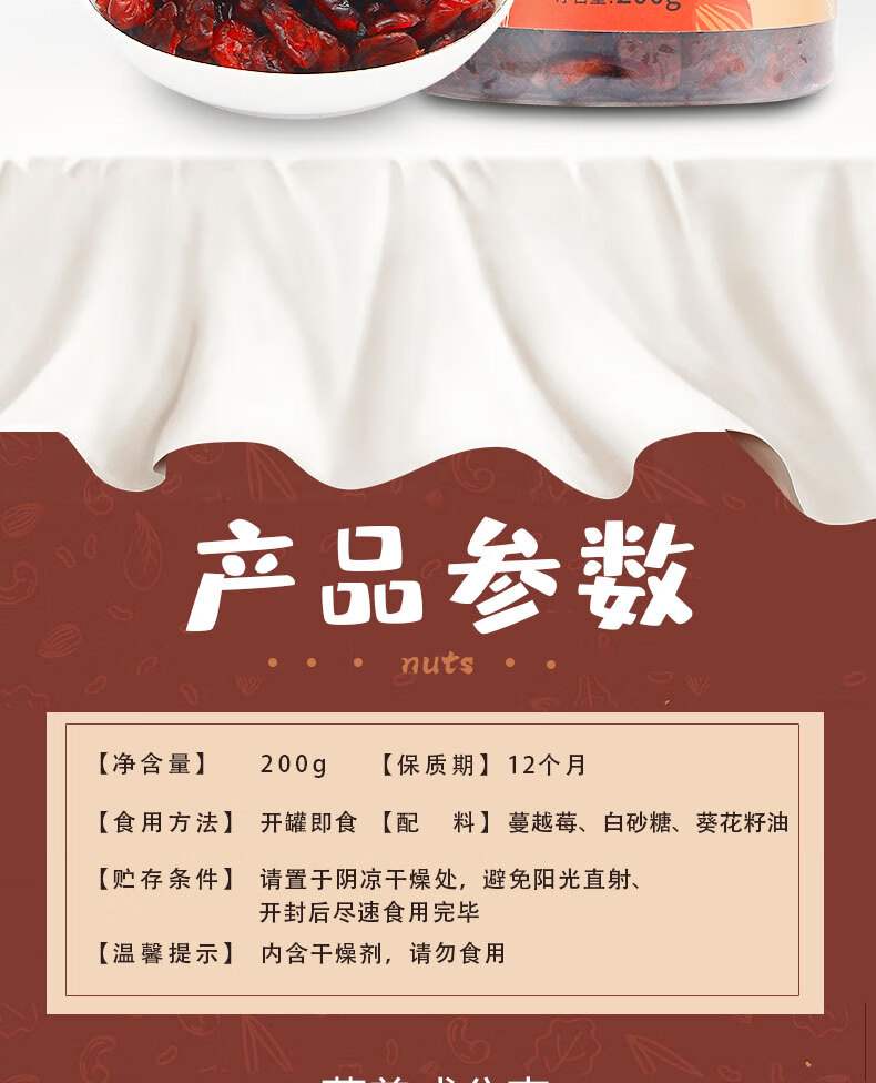 商品名称:滋美世家 蜜饯烘焙蔓越莓干无核梅干果 罐装200g