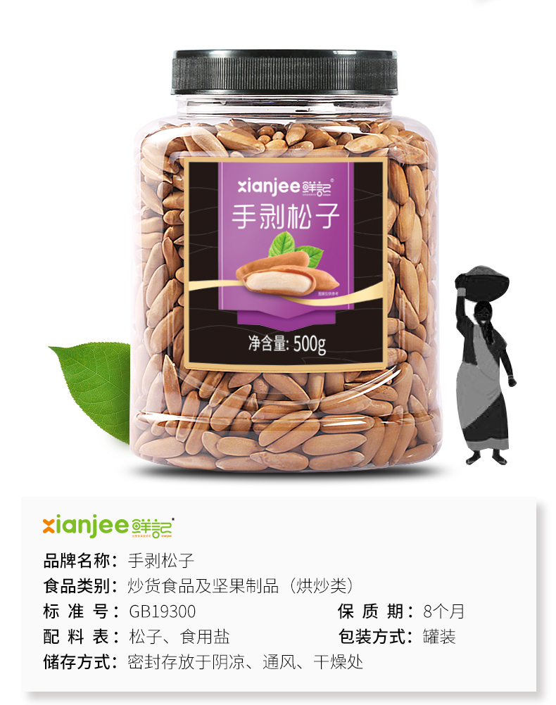 商品名称:鲜记 手剥巴西松子500g/罐 坚果炒货