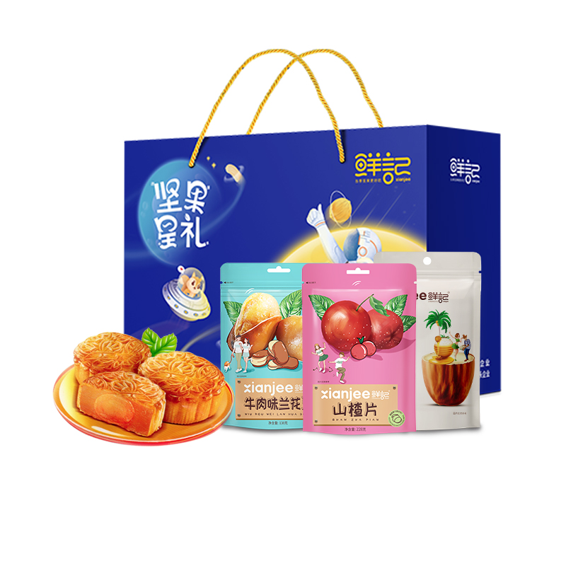 商品名称:鲜记坚果精装月饼礼盒中秋送礼品 坚果星礼中秋礼盒1.204kg 月饼礼盒 单位:盒