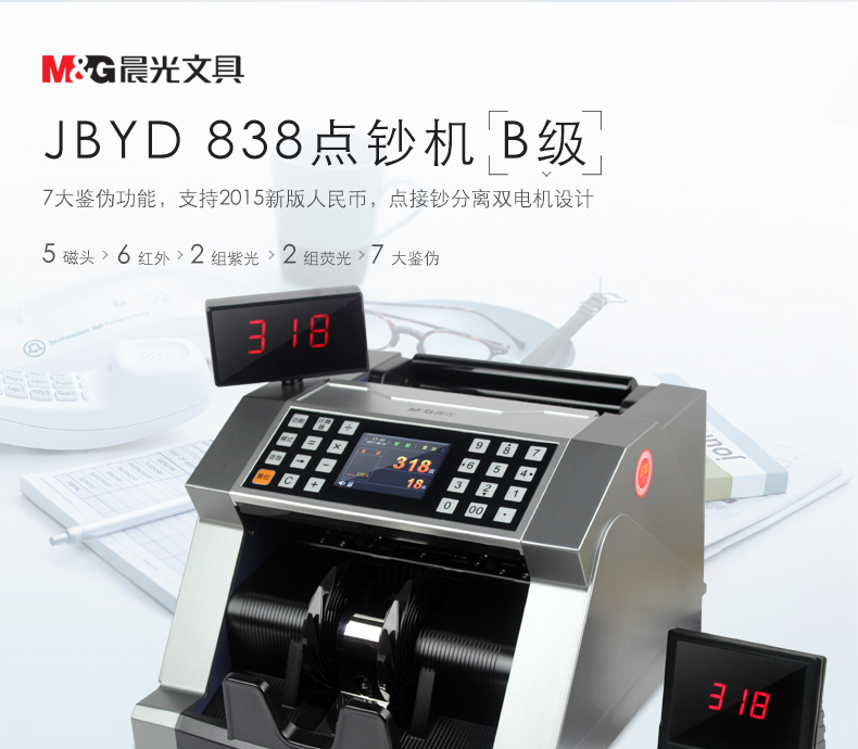 商品名称:晨光 点钞机91838智能B类银行专用三屏语音验钞机新版人民币