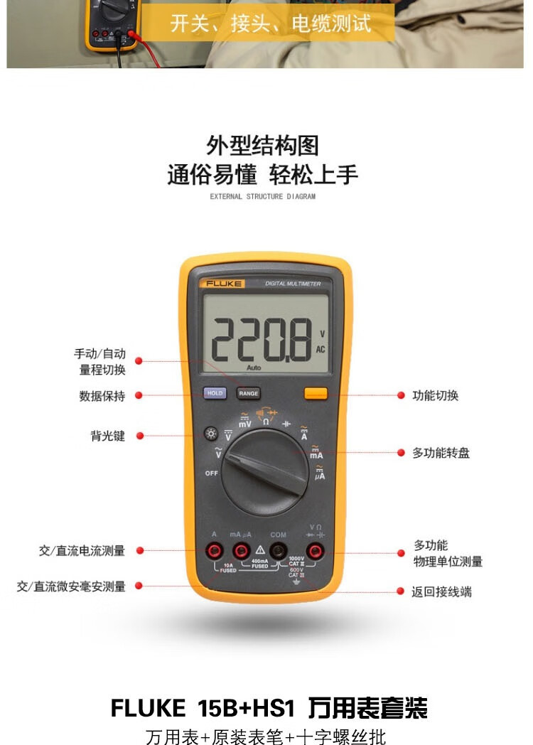 商品名称:FLUKE 15B+HS1 万用表套装