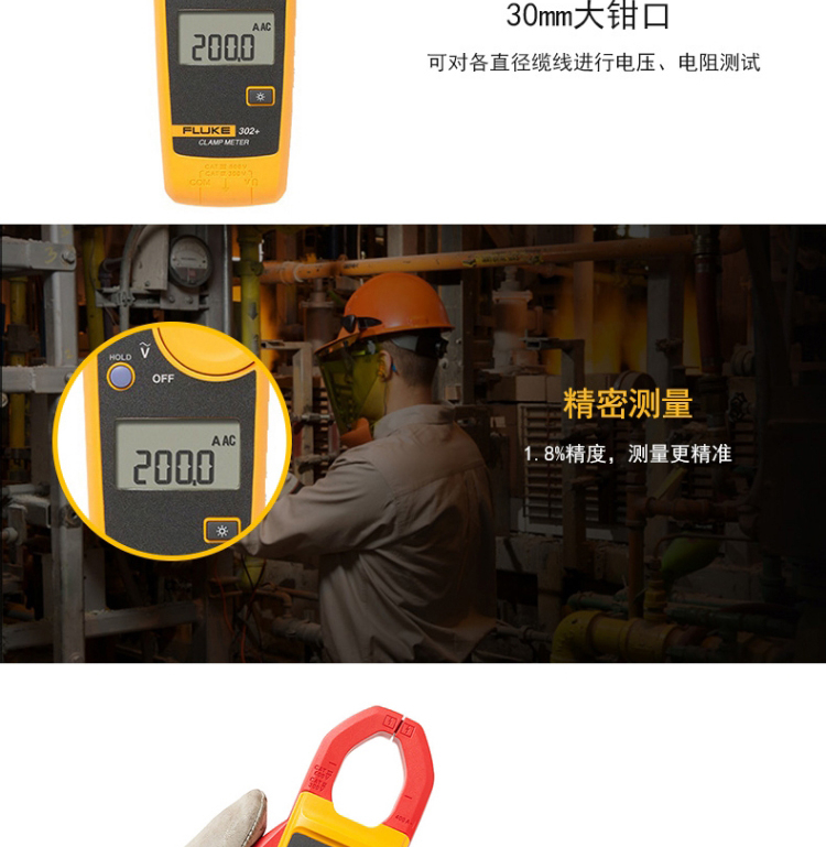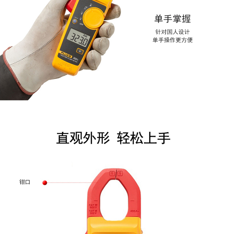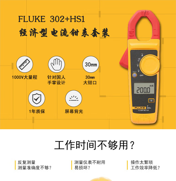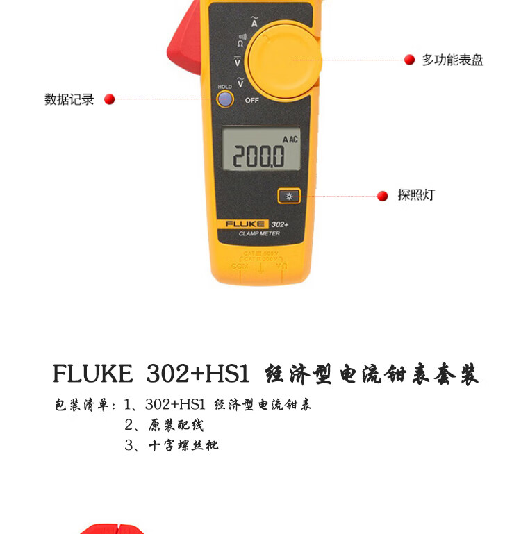 商品名称:FLUKE 302+HS1 经济型电流钳表套装
