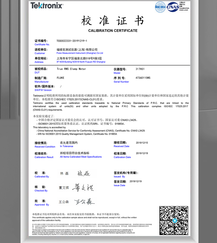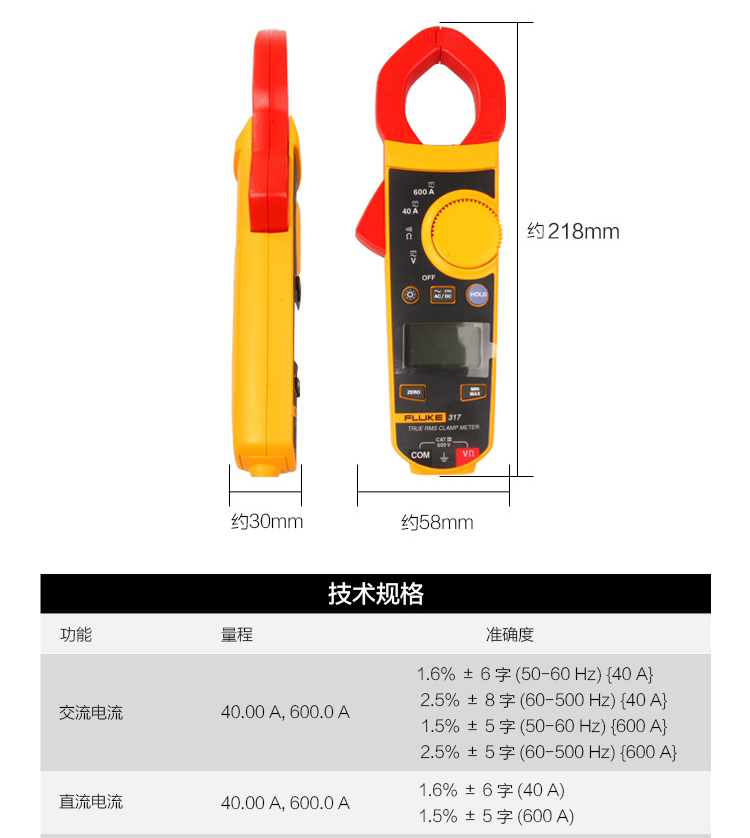 商品名称:FLUKE 317HS1 交直流钳形表