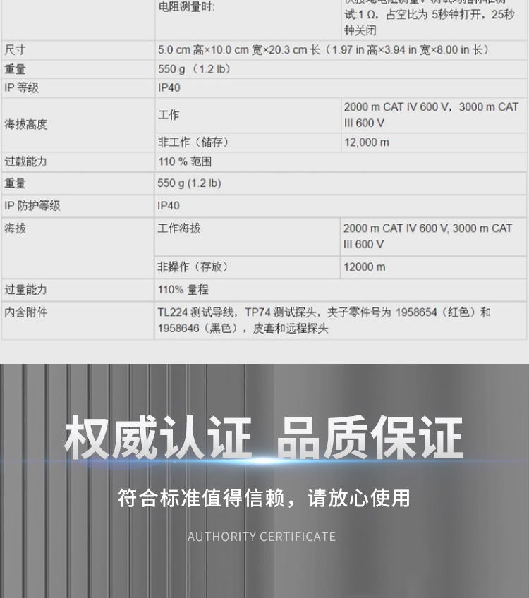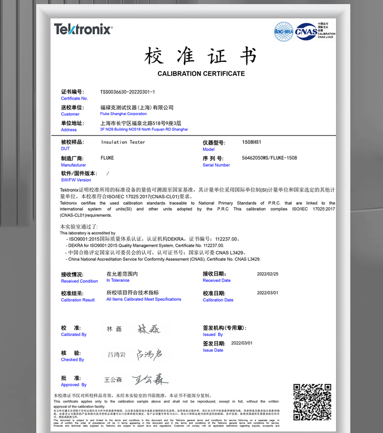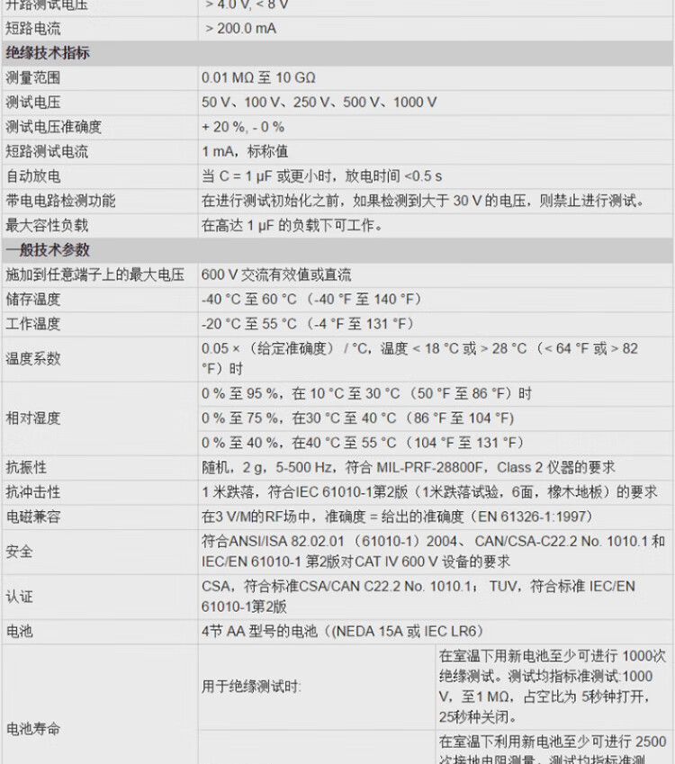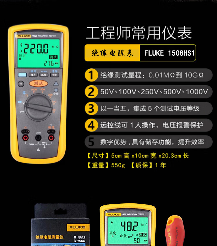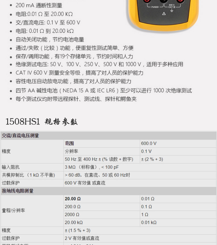 商品名称:FLUKE 1508HS1 绝缘电阻表