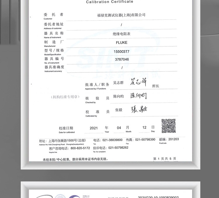 商品名称:FLUKE 1550CST7 绝缘电阻表