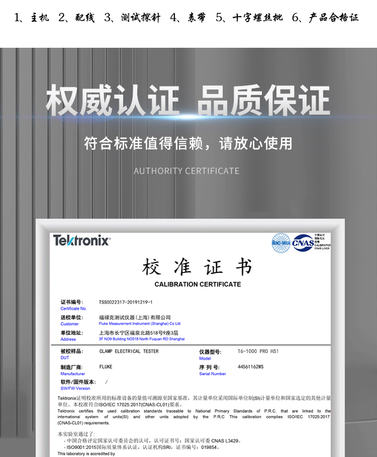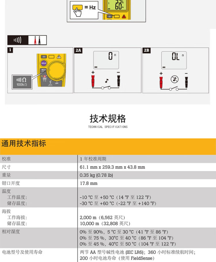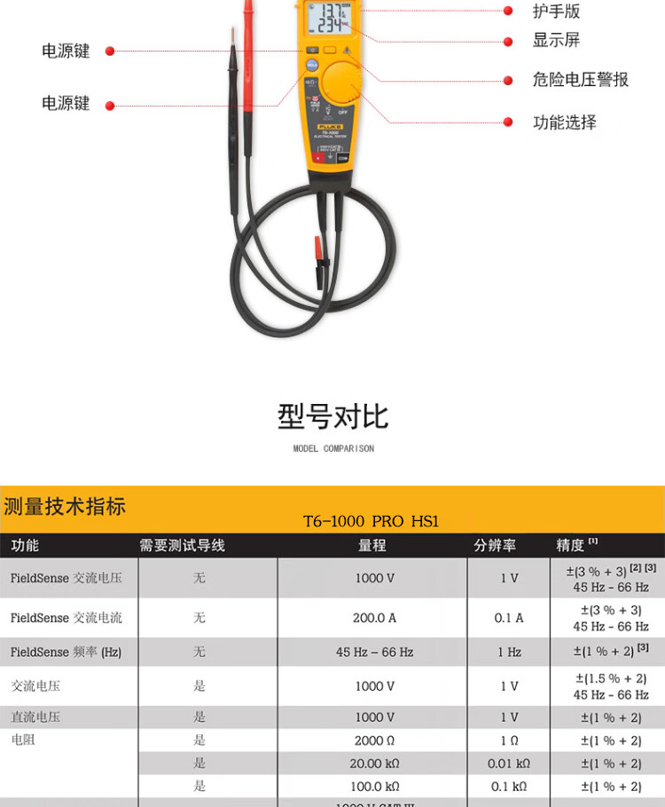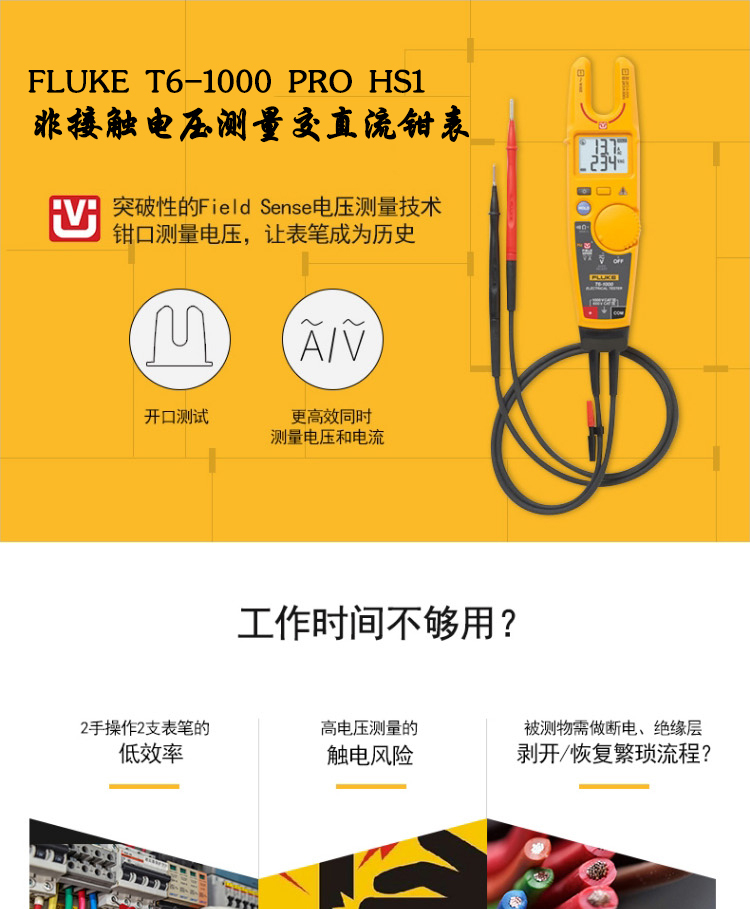 商品名称:FLUKE T6-1000 PRO HS1 非接触电压测量交直流钳表