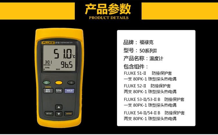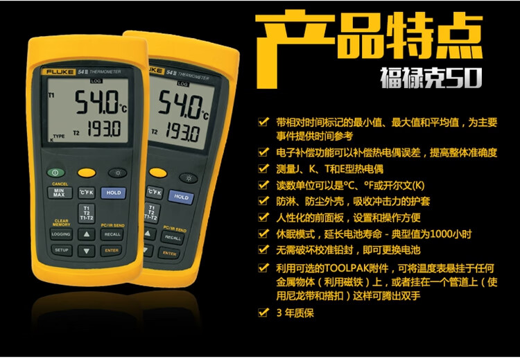 福禄克(FLUKE)52-2 接触型热电偶测温仪 数显温度计 FLUKE-52-2 CMC