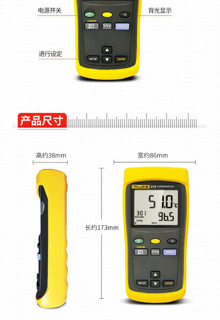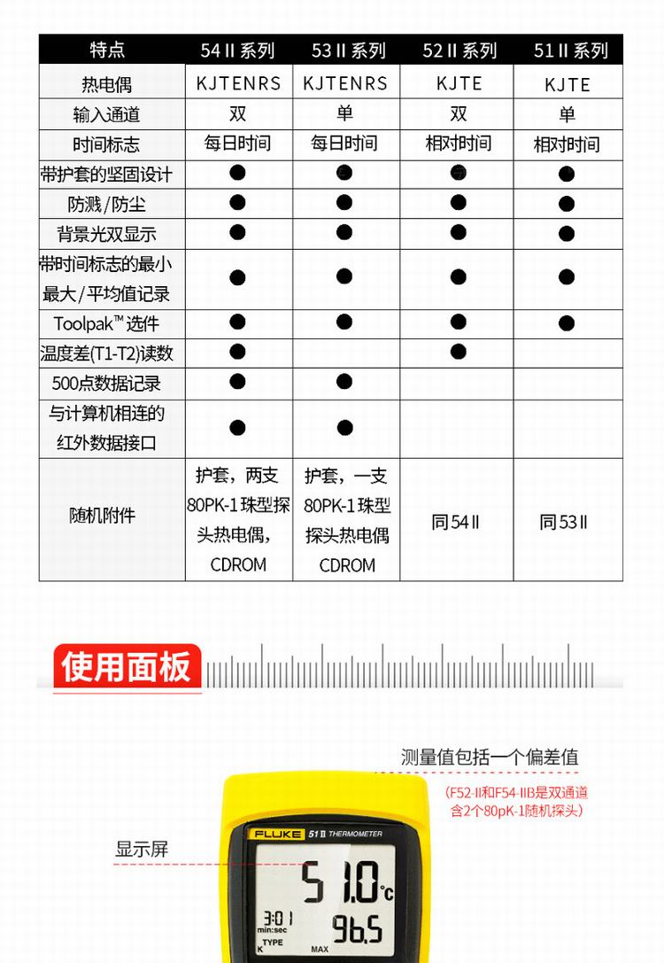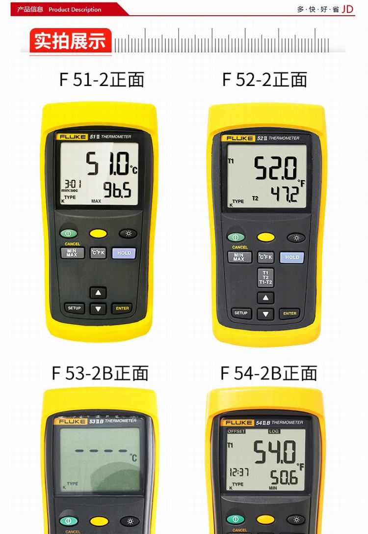商品名称:福禄克(FLUKE)52-2 接触型热电偶测温仪 数显温度计 FLUKE-52-2 CMC