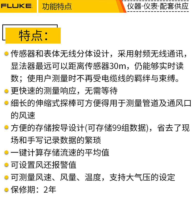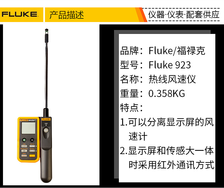 商品名称:福禄克(FLUKE)F923 热敏式风速仪 量程0.20 m/s - 20.00 m/s Fluke 923