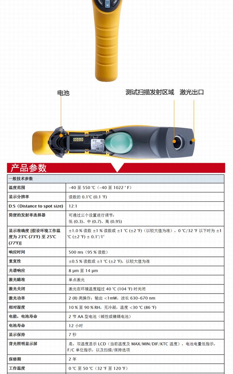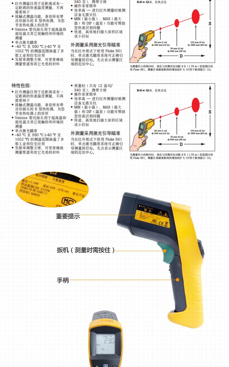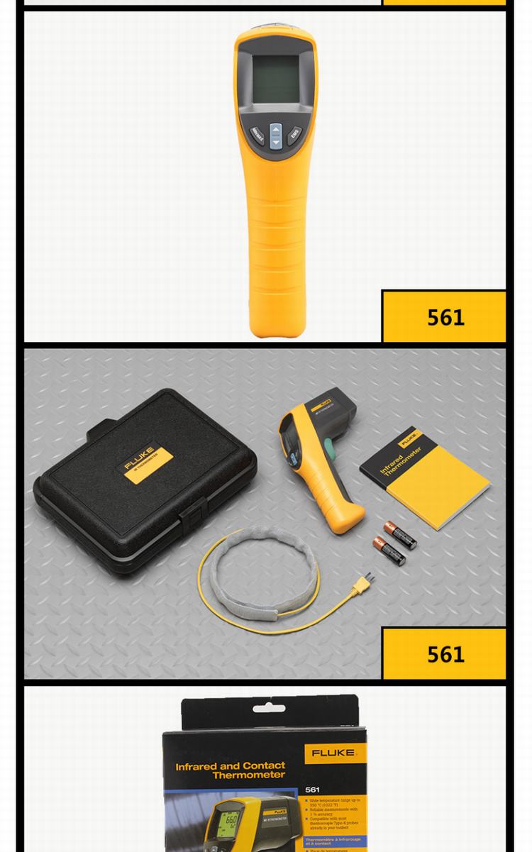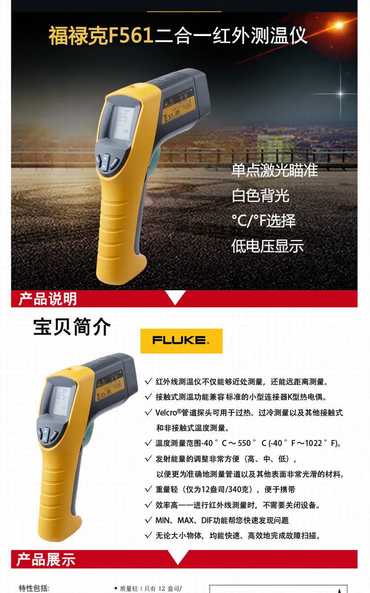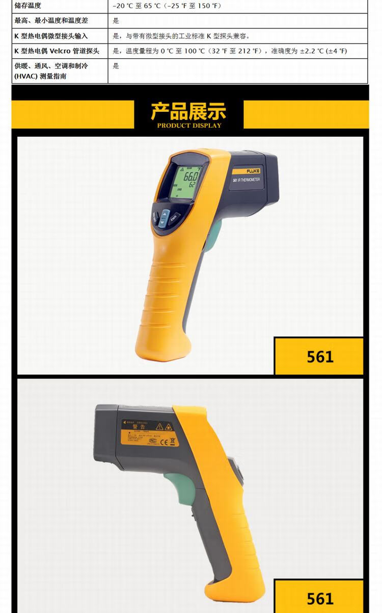 商品名称:福禄克(FLUKE)561CH红外线与接触式测温仪 测温枪 -40℃-550℃ FLUKE-561CH