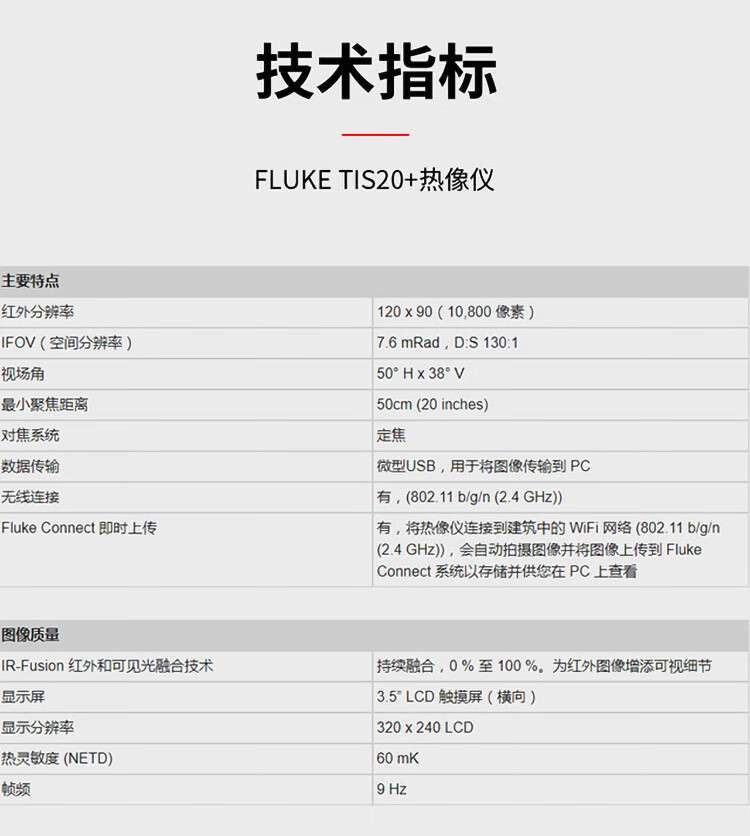 商品名称:福禄克(FLUKE)TIS20+红外热成像仪 手持科研型红外热像仪 -20 °C 至 150 °C