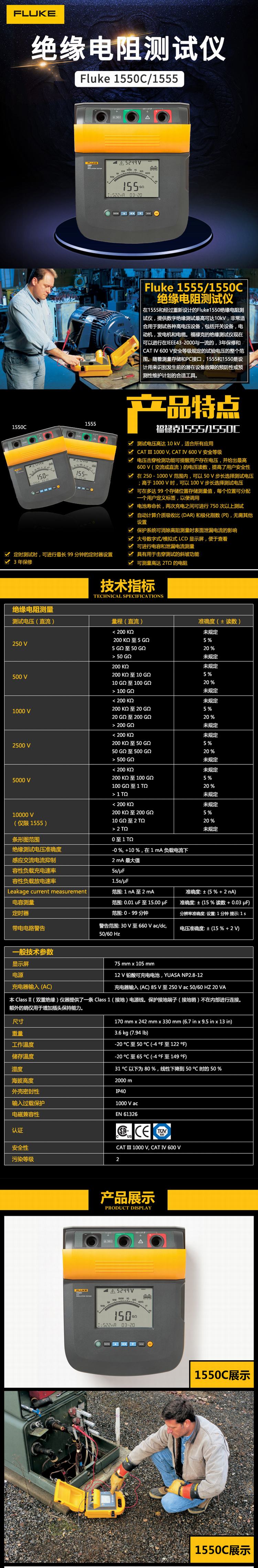 商品名称:福禄克(FLUKE)1550C FC绝缘电阻测试仪 兆欧表2TΩ FLUKE 1550C FC