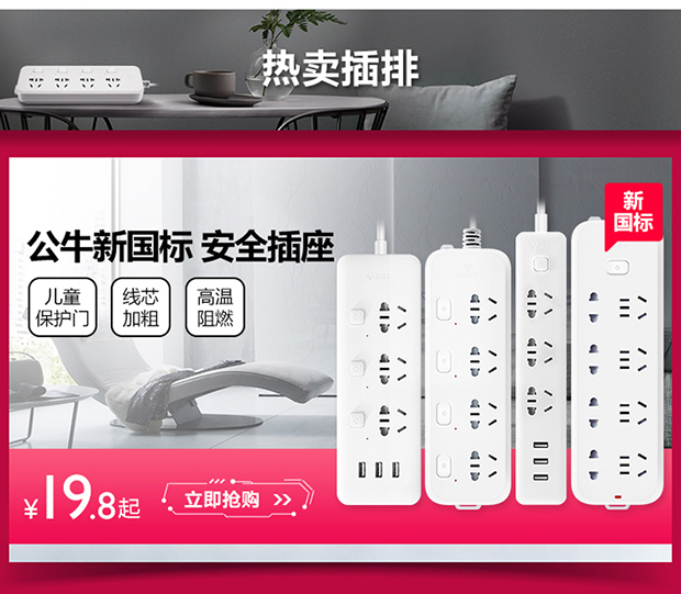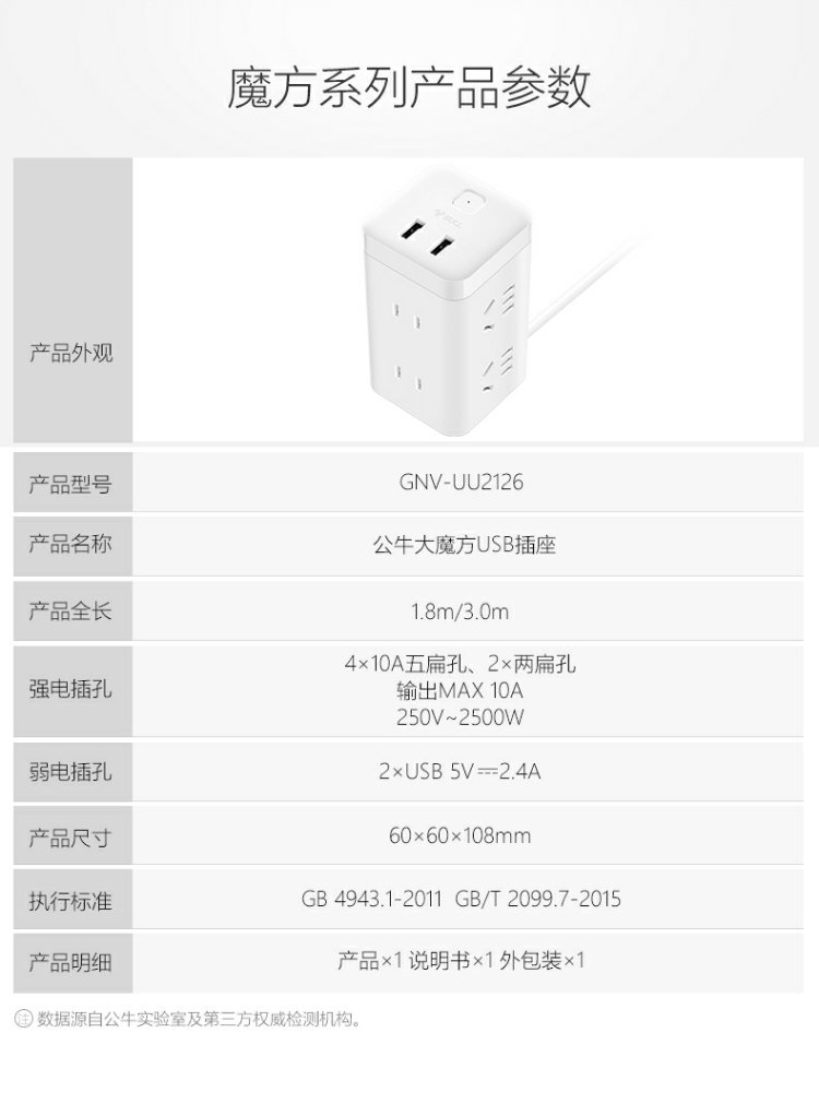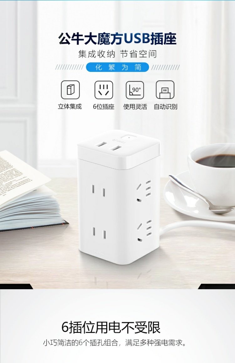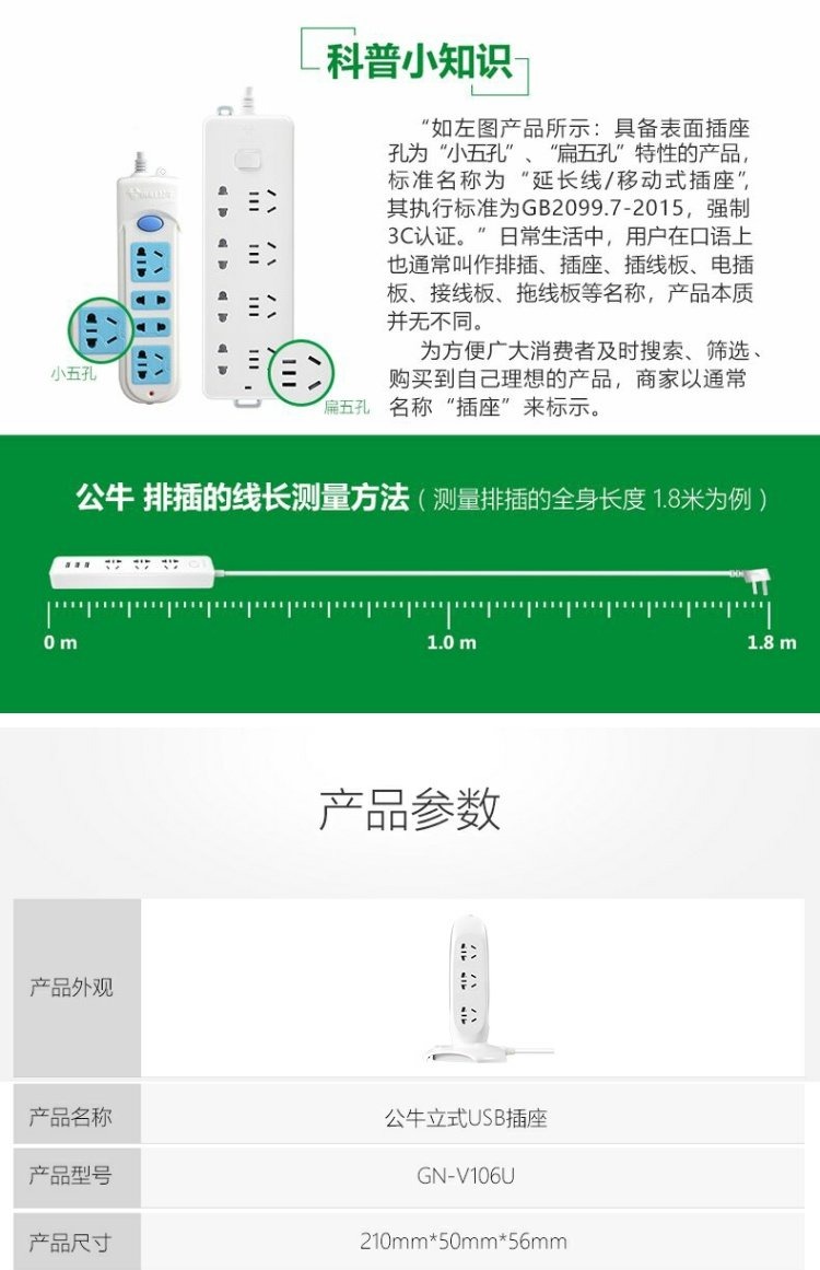 商品名称:公牛 立式办公插座智能插排插线板接线板插板电源插座带过载保护 GN-V1080