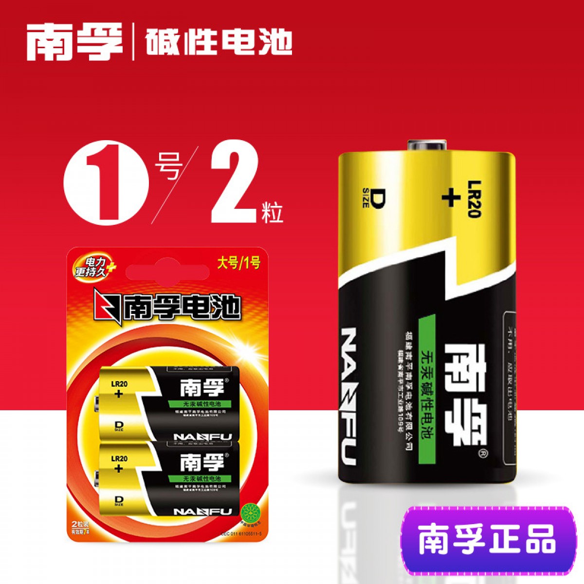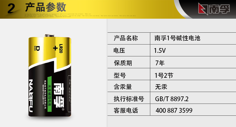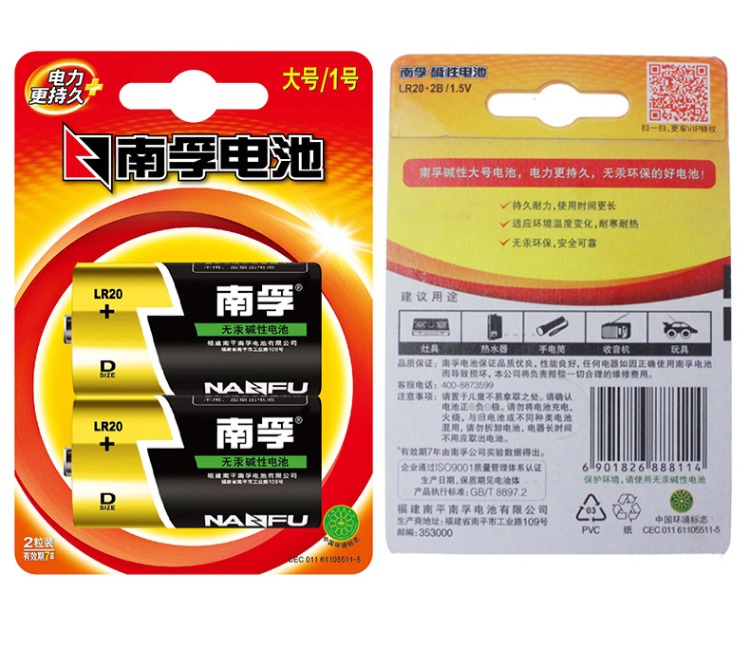 商品名称:南孚 1号电池2粒 LR20-2B