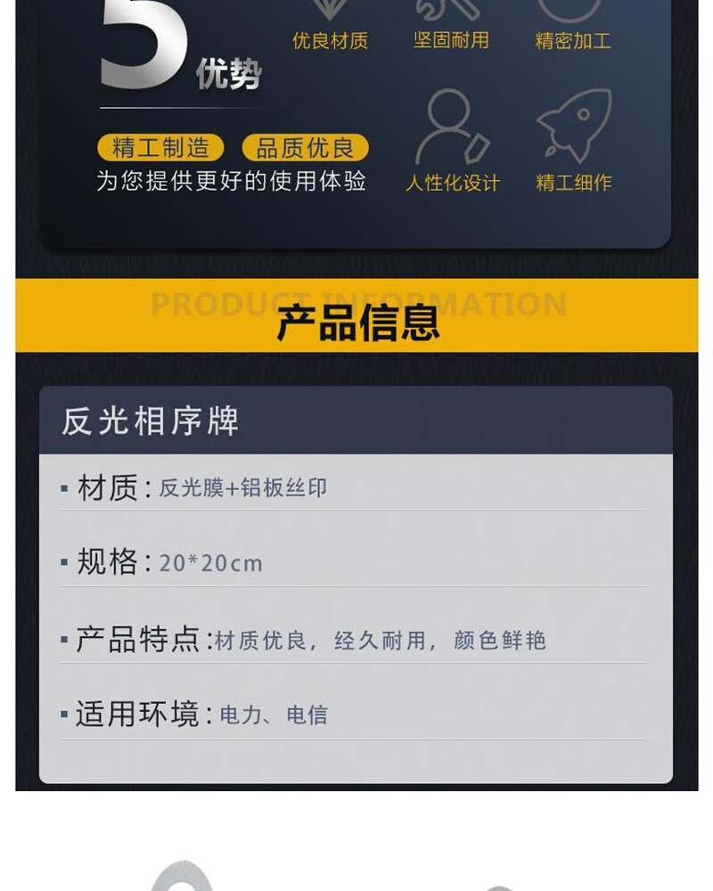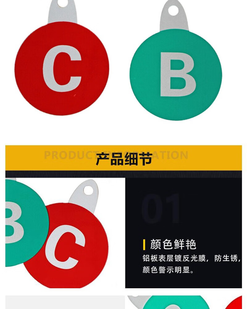 商品名称:邦耀 电力线路字母相序牌A/B/C/N 铝反光标识牌杆号牌 20x20cm 单位:个 3个起订